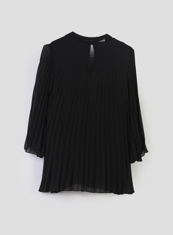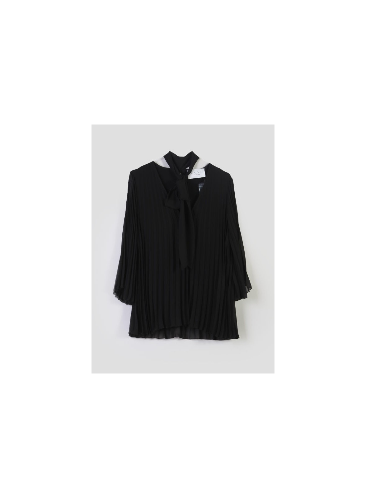 Blusa firmata KAOS, un capo dallo stile raffinato e senza tempo, ideale per completare con eleganza ogni look. Realizzata in morbido tessuto plissé, presenta una linea fluida che valorizza la silhouette senza costringere. Il design è arricchito da uno scollo a V con fusciacca regolabile, dettaglio che aggiunge un tocco femminile e sofisticato. Le maniche a tre quarti conferiscono equilibrio e leggerezza alla figura, mentre la chiusura sul retro a goccia con bottoncino in tinta dona un finish curato e discreto.