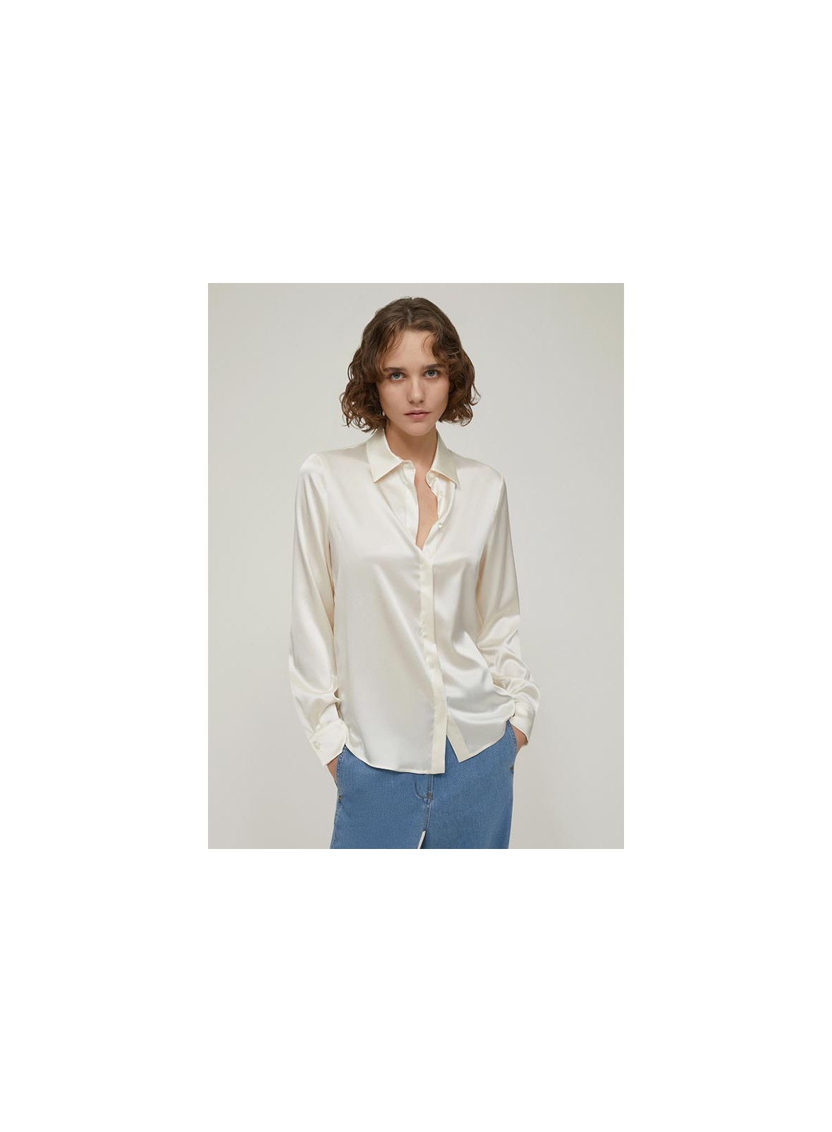 Camicia in raso di seta stretch firmata PENNYBLACK, linea dritta e colletto classico. Elegante e versatile per ogni occasione.