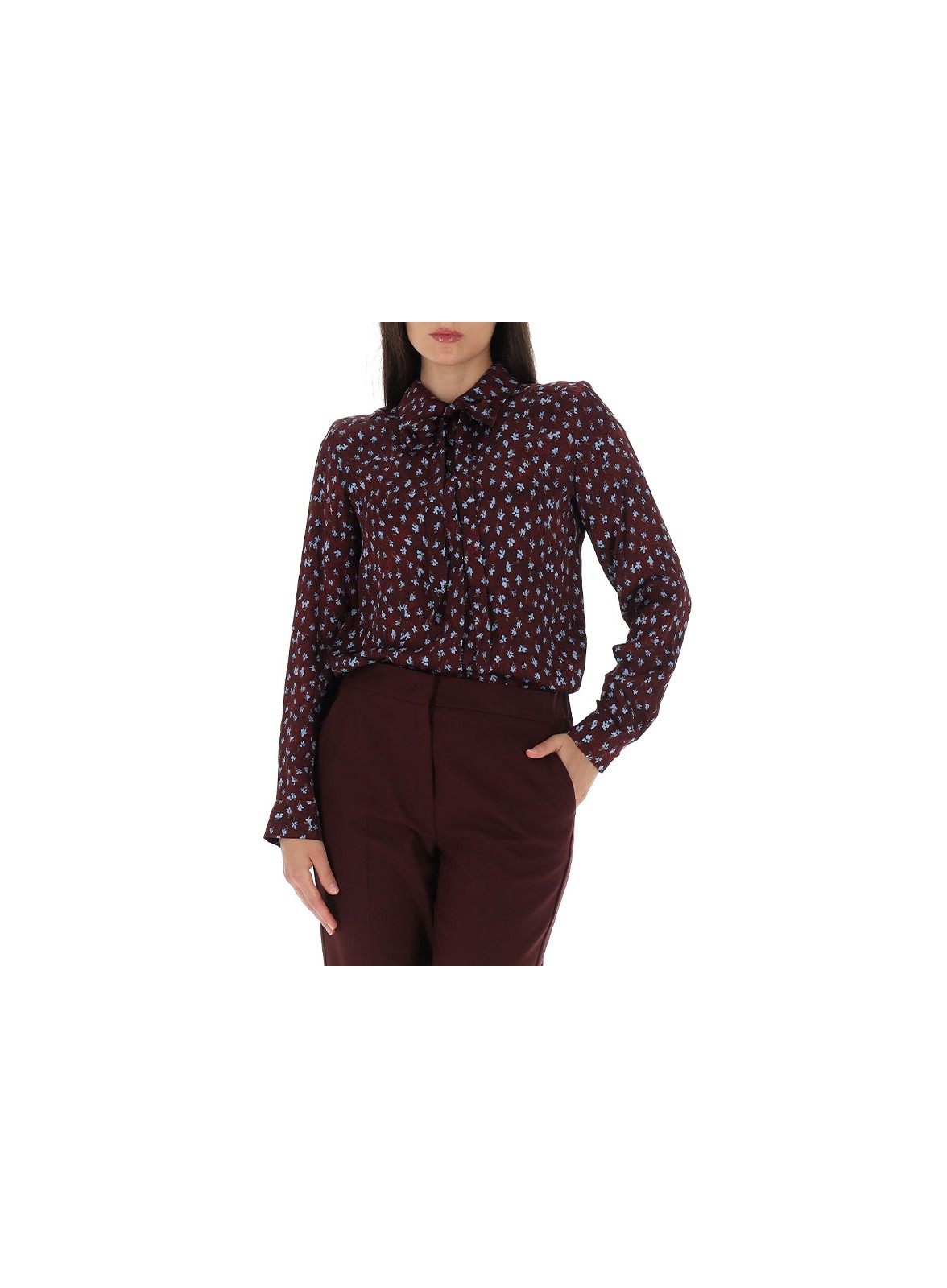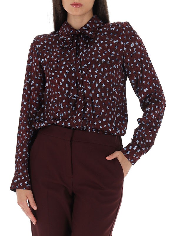 Camicia in raso stampato firmata IBLUES, linea dritta e sciarpina staccabile per un look versatile ed elegante.