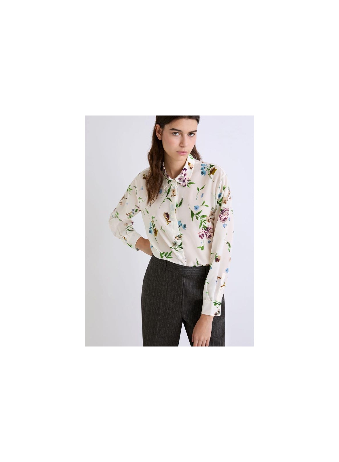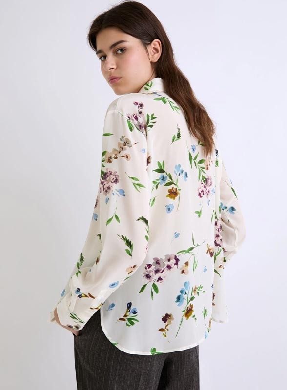 Camicia firmata MARELLA in pura seta crêpe de Chine, stampa elegante e fit regolare per uno stile raffinato e contemporaneo.