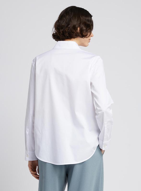 Camicia in puro cotone dal taglio dritto che garantisce libertà di movimento e una vestibilità confortevole. Il design essenziale è valorizzato dalla manica lunga con giro sceso, rifinita da polsino con bottone, e dalla chiusura con bottoni in tinta a vista che dona armonia e pulizia alla linea. Il fit regolare la rende un capo versatile, perfetto da indossare sia in contesti formali che nel tempo libero. Un capo raffinato e contemporaneo firmato MM MAXMARA, ideale per completare con stile ogni guardaroba femminile.