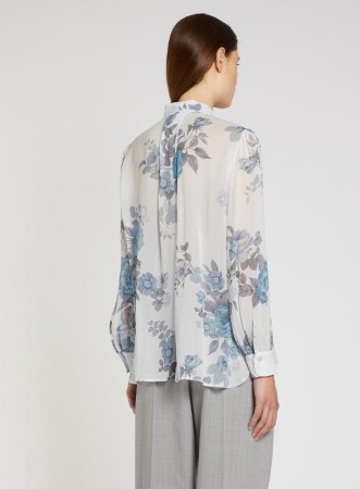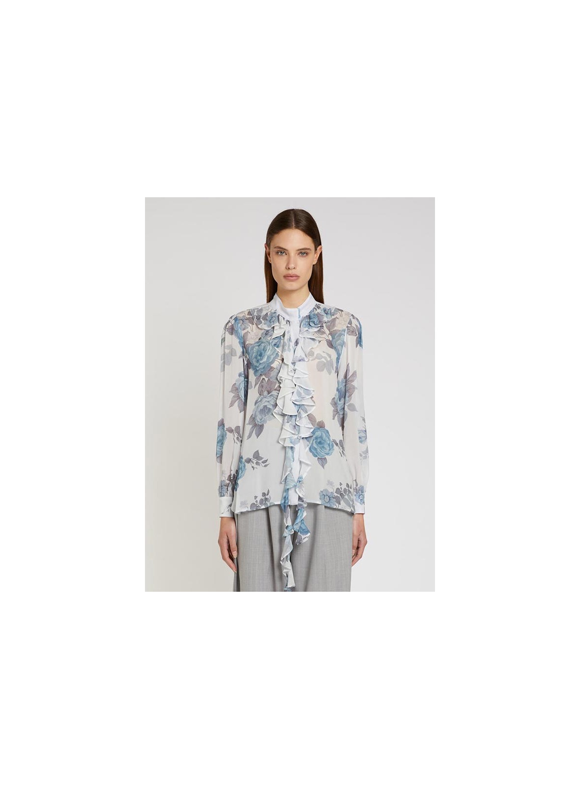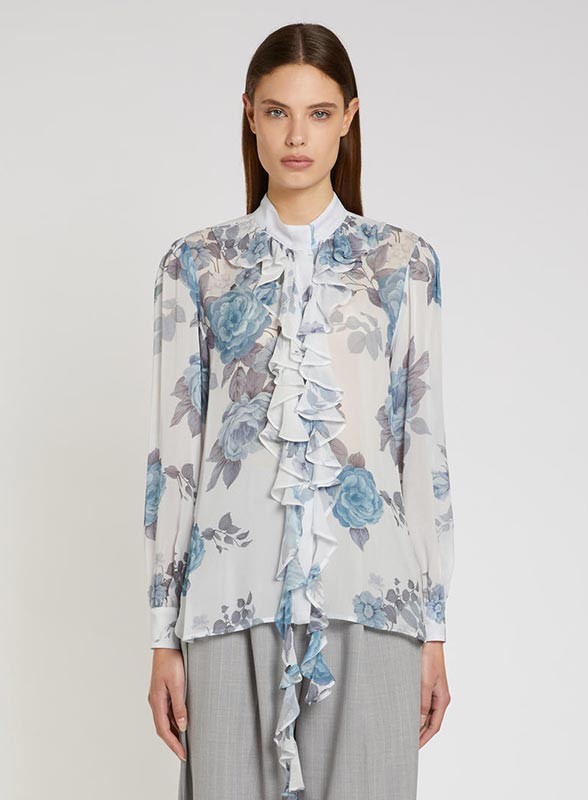 Camicia in georgette di viscosa con rouche romantiche, collo coreana e fit regolare, firmata MARELLA.