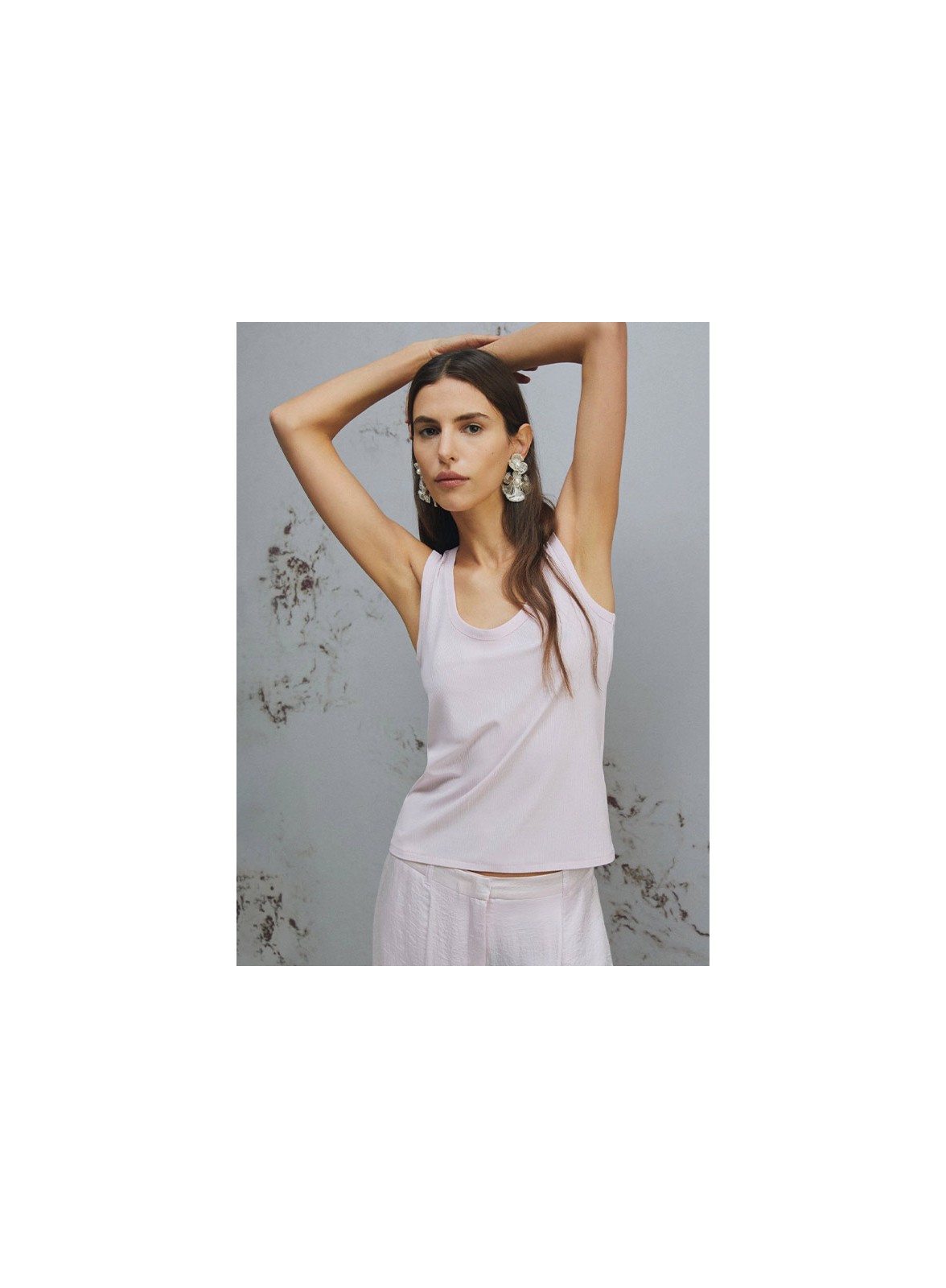 Canotta a costine in jersey lucido, fluida e aderente, con anello logato sul retro, firmata MARELLA MONOCHROME.