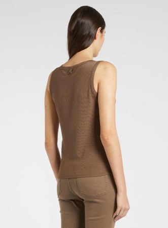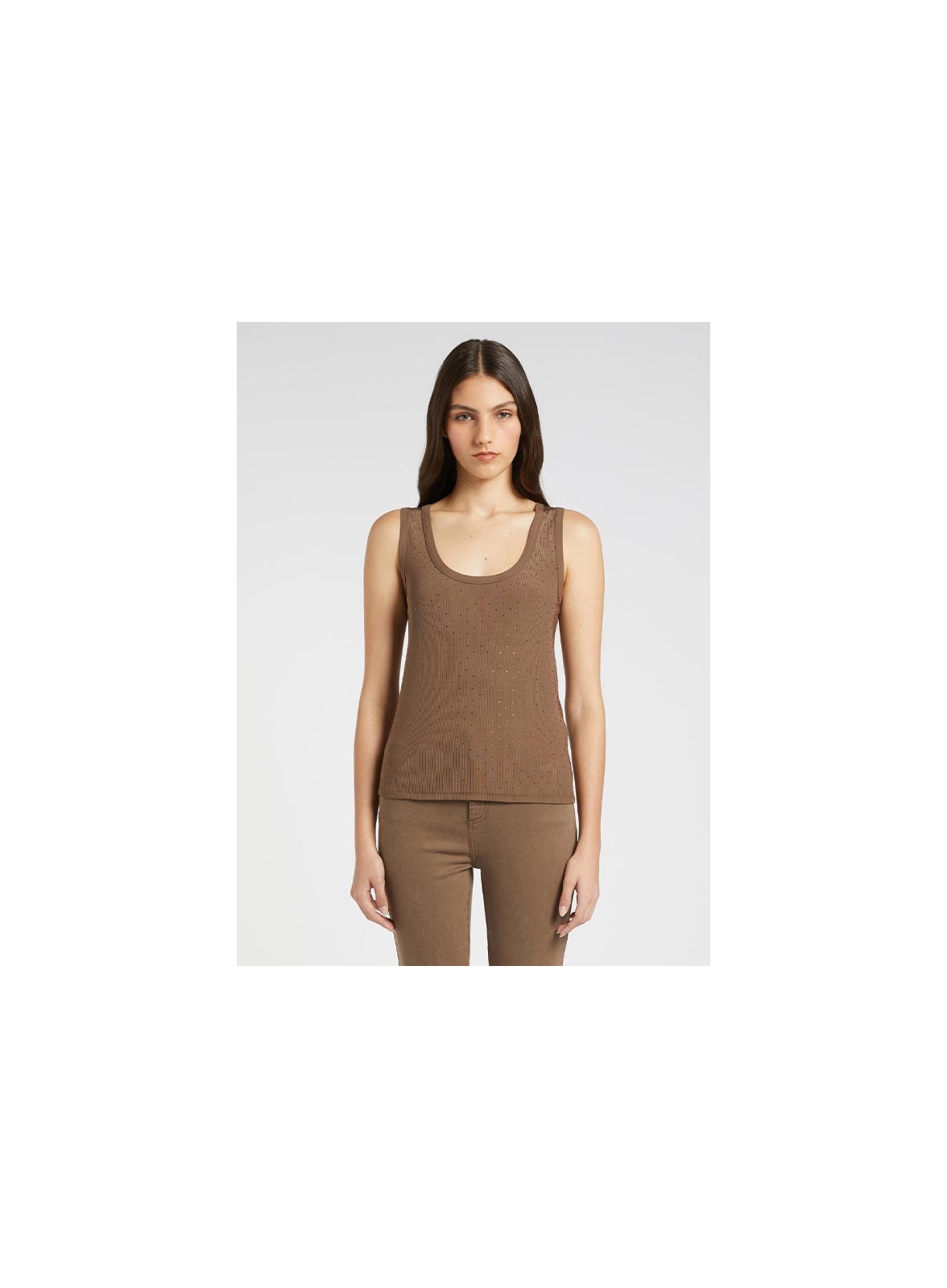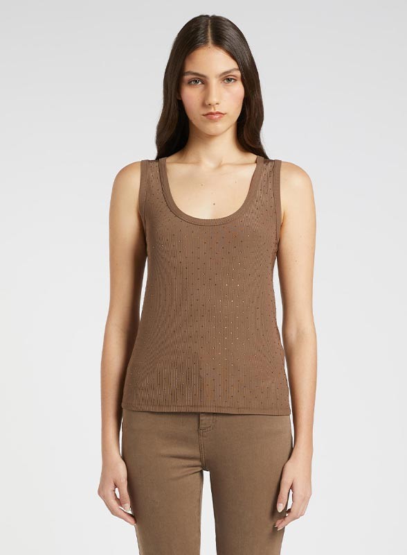 Canotta firmata MARELLA in jersey stretch con micro strass e anello logato sul retro. Fit aderente, collezione MARELLA MONOCHROME.
