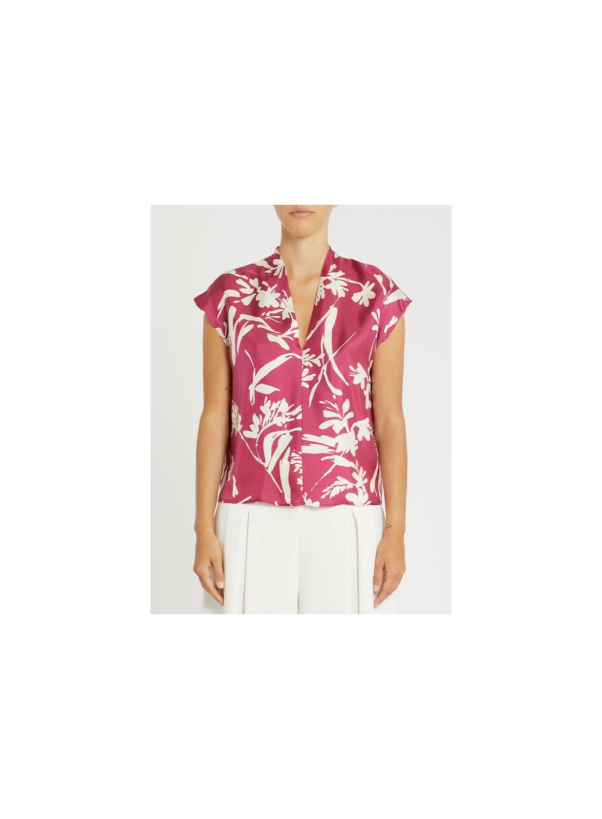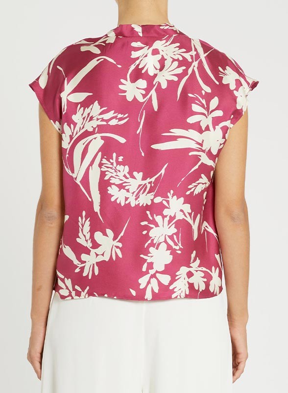 Camicia firmata PENNYBLACK in twill di seta lucente con stampa floreale grafica, perfetta per look eleganti o outfit quotidiani chic.