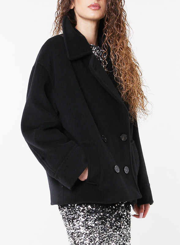 Caban firmato Marella in misto lana, cocoon fit, collo a rever, doppiopetto. Stile caldo ed ecosostenibile. Scopri la nuova collezione.