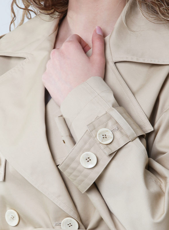 Realizzata in gabardine di cotone tecnico antigoccia, questa creazione firmata è una combinazione perfetta di stile e funzionalità. Il doppiopetto con maxi revers e le linee ampie e diritte creano un look sofisticato, mentre la cintura in vita permette di regolarne la vestibilità.