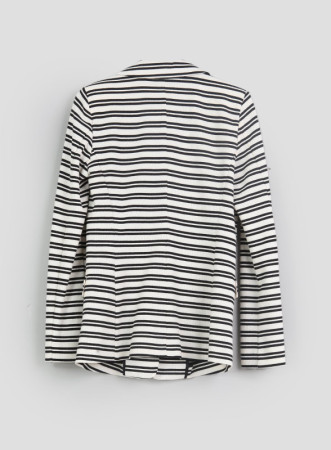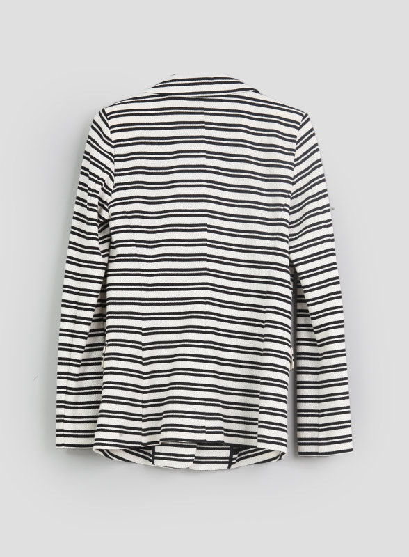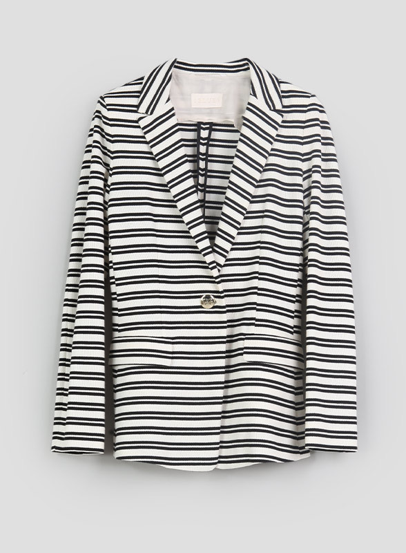 Realizzato in morbido jersey misto cotone, offre comfort e stile senza pari. La linea semiaderente accentua la silhouette femminile, mentre il collo a rever e le maniche lunghe conferiscono un tocco di raffinatezza. Le tasche con patte aggiungono praticità e un dettaglio sartoriale. Perfetto per completare un look professionale o per aggiungere un tocco di eleganza a un outfit casual, questo blazer si distingue per la sua versatilità e il suo design senza tempo.