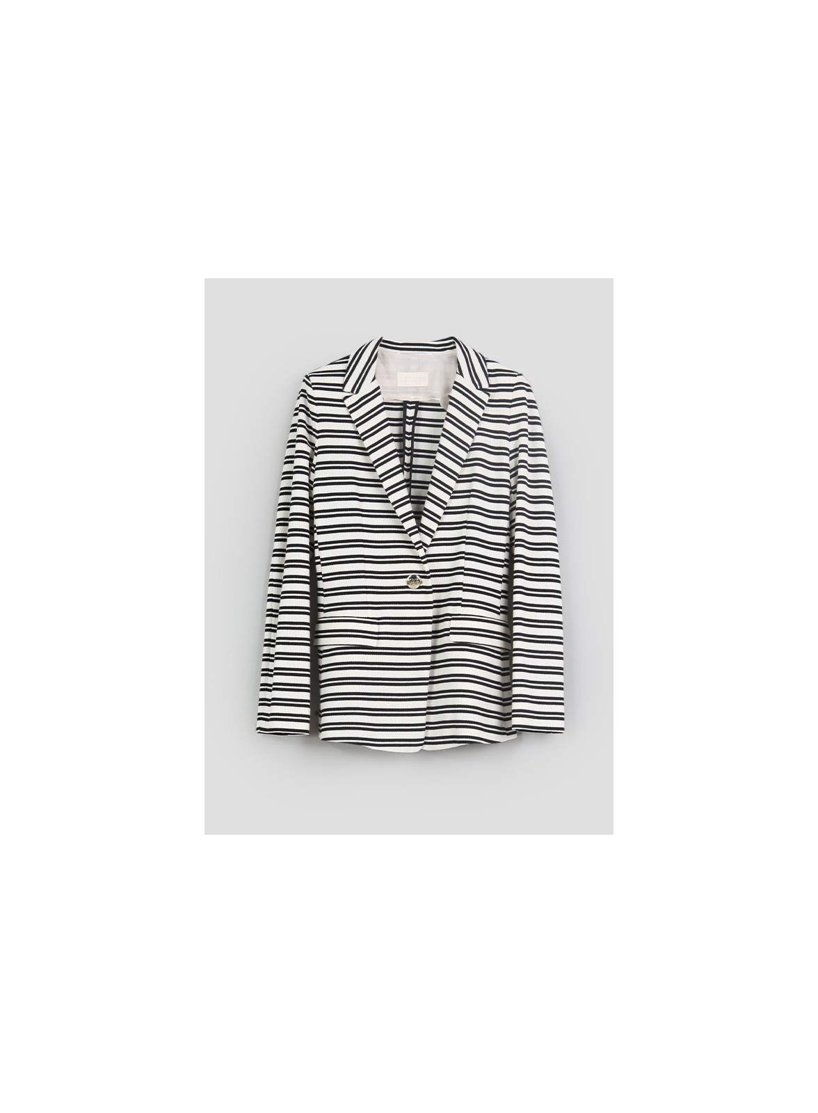 Elegante blazer firmato Iblues in jersey/cotone con rever, tasche e chiusura bottone. Perfetto per ogni occasione della collezione SS24.