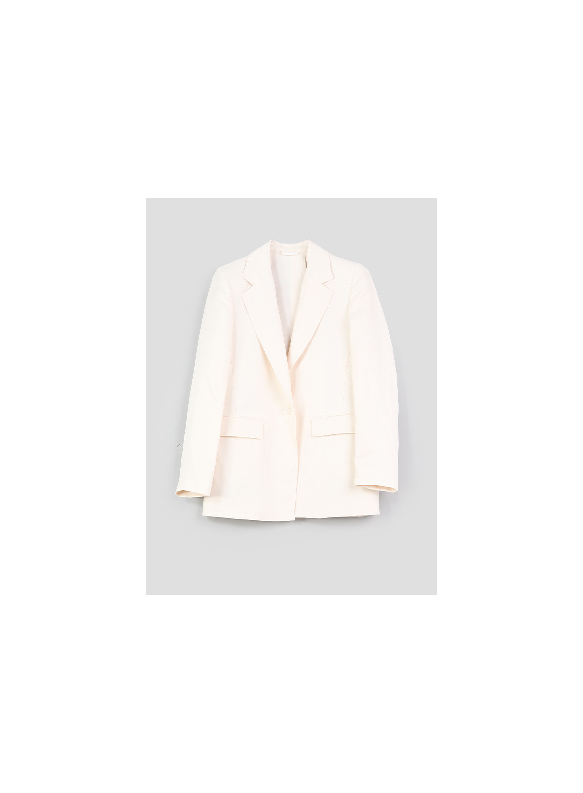 Blazer firmato Iblues, lino/cotone, linea sfiancata, un bottone. Perfetto per stile casual-chic della collezione SS24.