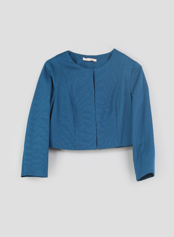 Con un design pulito e un taglio slim che accarezza la figura, questa giacca presenta un girocollo e maniche trequarti per un tocco sofisticato. La chiusura con gancetti aggiunge un dettaglio raffinato, mentre la lunghezza alla vita conferisce un'aria moderna e femminile. Sfoderata per massimo comfort, questa giacca è la scelta perfetta per ogni occasione, dalla cena elegante al casual chic. Combinala con un party dress per un look sofisticato o con i tuoi jeans preferiti per un tocco di glamour urbano.