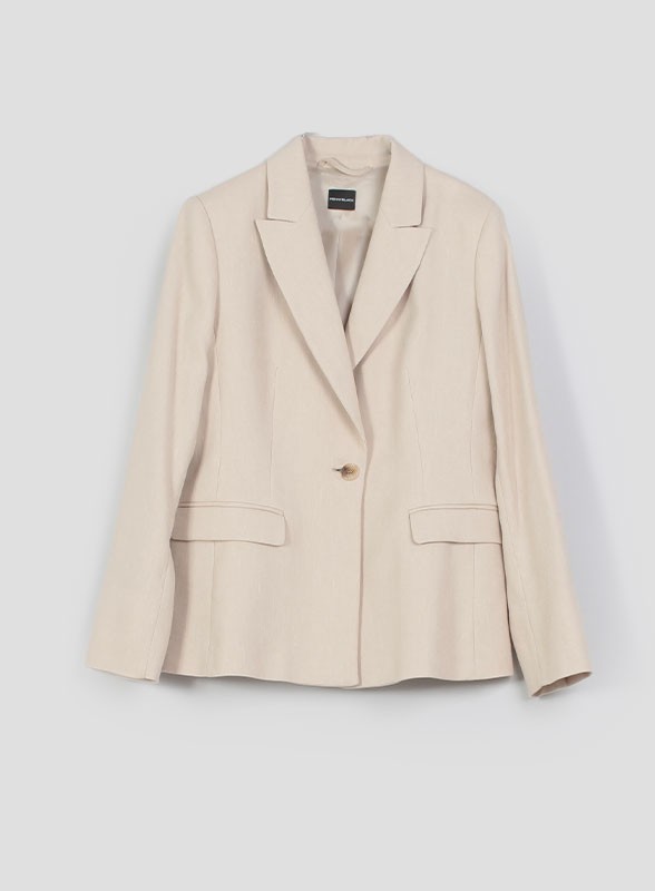 Giacca firmata PENNYBLACK, in twill di cotone e lino stretch, tinto in filo dal taglio monopetto a un bottone con rever a lancia e tasche con pattina. Foderato. La sua linea morbida dal taglio classico rivisitato è l'ideale per outfit al passo con le nuove tendenze della primavera.