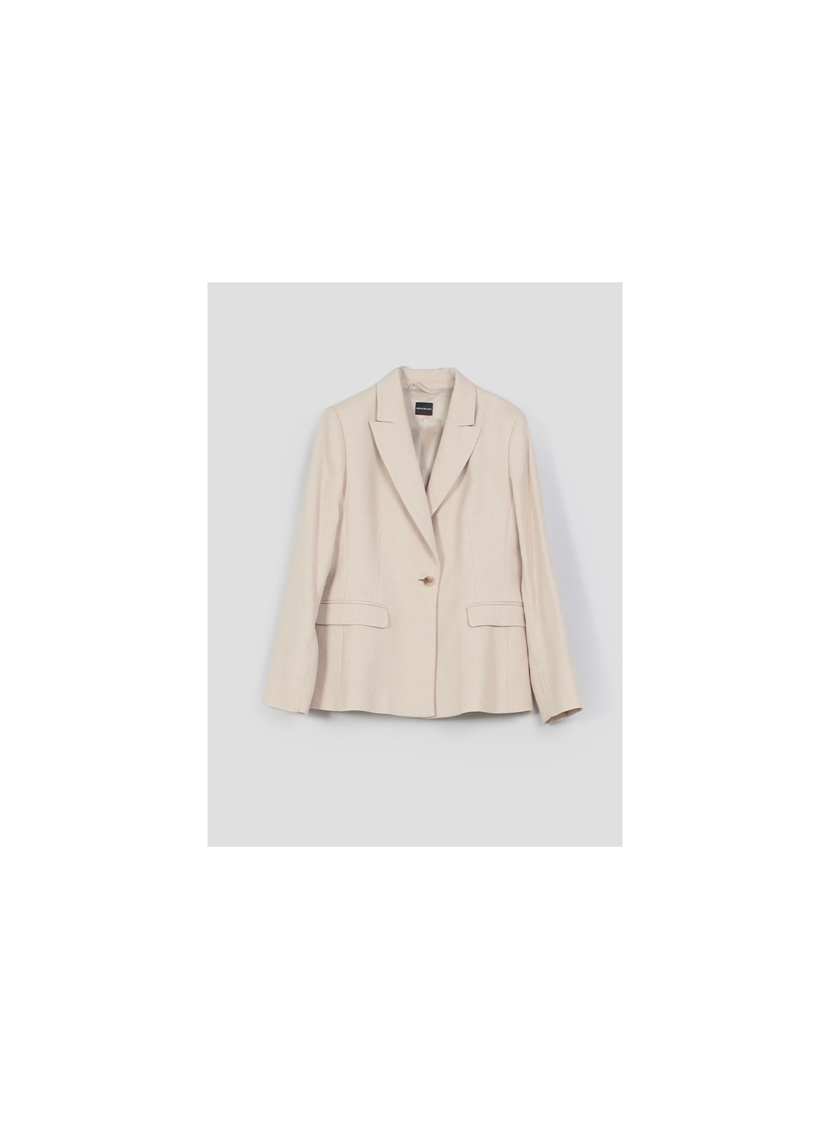 Giacca firmata PENNYBLACK, in twill di cotone e lino stretch, taglio monopetto, rever a lancia, tasche con pattina. Scopri la nuova collezione.