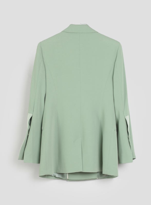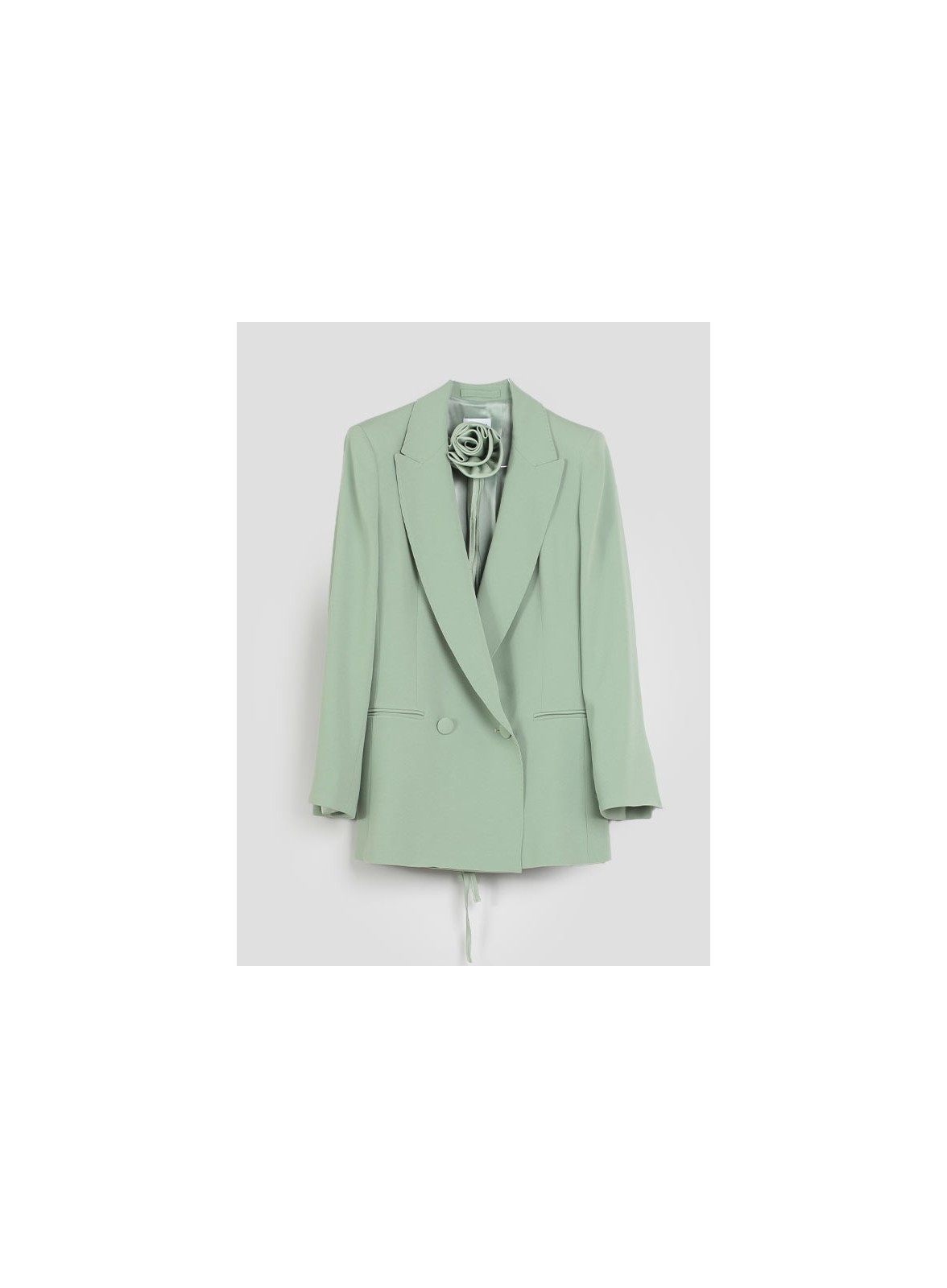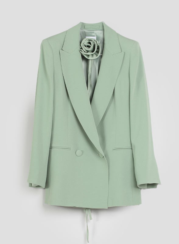 Blazer firmato MARELLA in cady crêpe con cintura romantica e fiore in tinta. Un capo dal fit regolare, elegante e sostenibile.