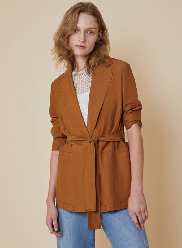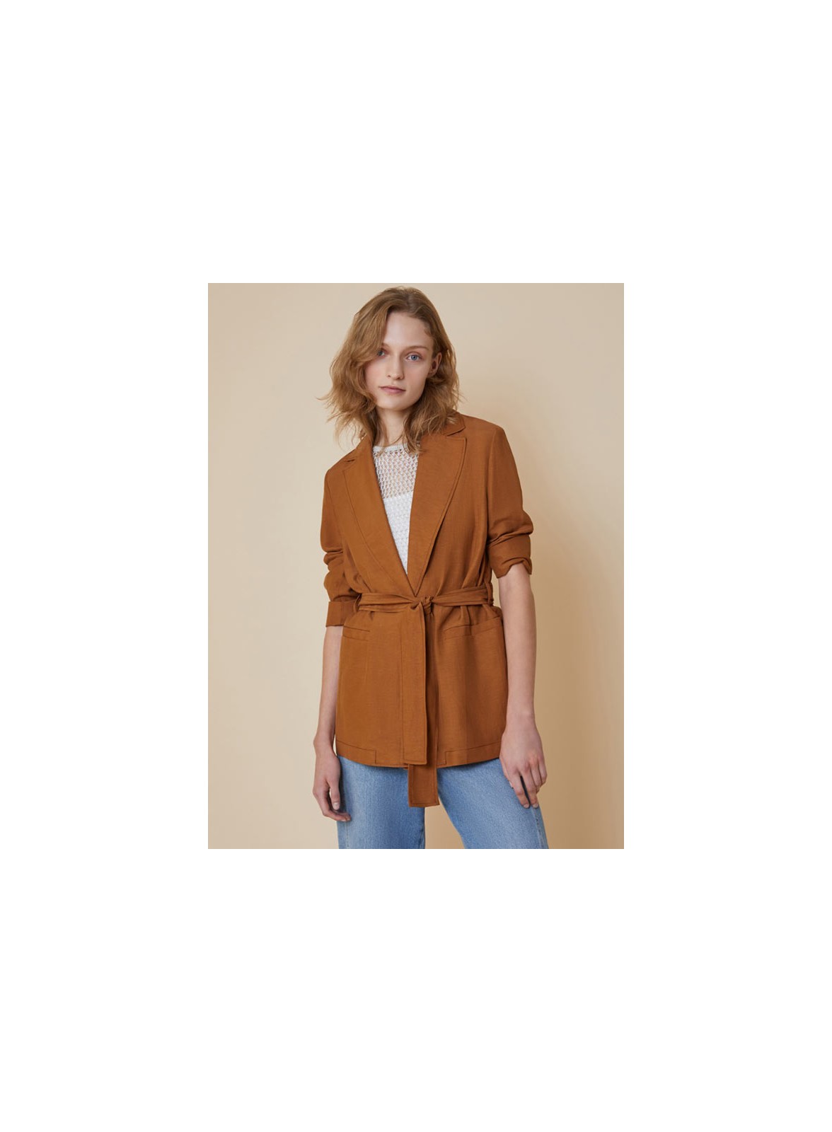 Giacca firmata PENNYBLACK dal design contemporaneo e dalla linea morbida, perfetta per completare con eleganza disinvolta qualsiasi outfit di stagione. Questo modello, che unisce comfort e stile, è pensato per donne che cercano un capo sofisticato ma facile da abbinare. Realizzata in un pregiato mix di lino e viscosa, presenta una texture naturale, fresca al tatto e ideale per i mesi più miti. La giacca è proposta in tonalità neutre e raffinate, adatte ad ogni guardaroba e facili da coordinare. Il colore si integra armoniosamente con il taglio leggermente boxy, donando un look moderno e rilassato. La cintura in tinta permette di sottolineare il punto vita o di lasciarla aperta per uno stile più casual.