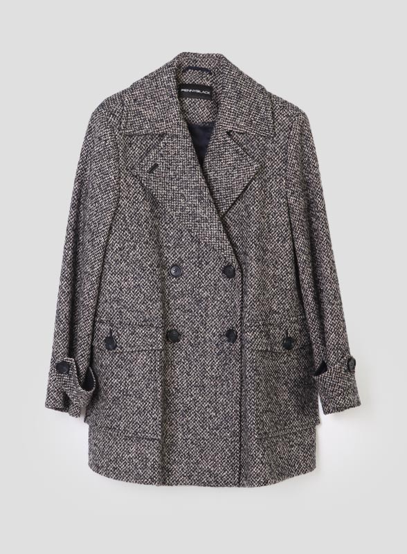Giaccone midi firmato PENNYBLACK in tweed, doppio petto e fit over, elegante e versatile, perfetto per il guardaroba donna.