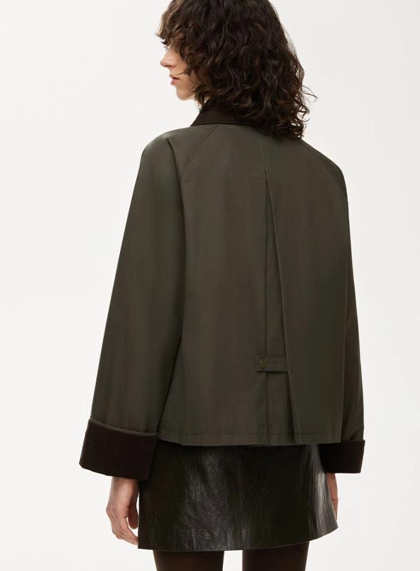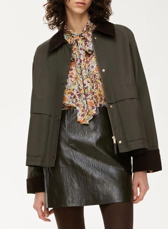 Giacca firmata IBLUES, in cotone cerato con collo e polsi in velluto a costine. Stile regolare, perfetta per il tempo libero.