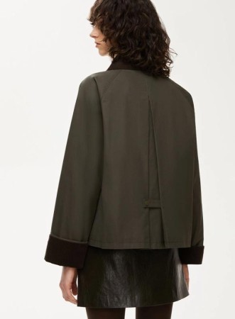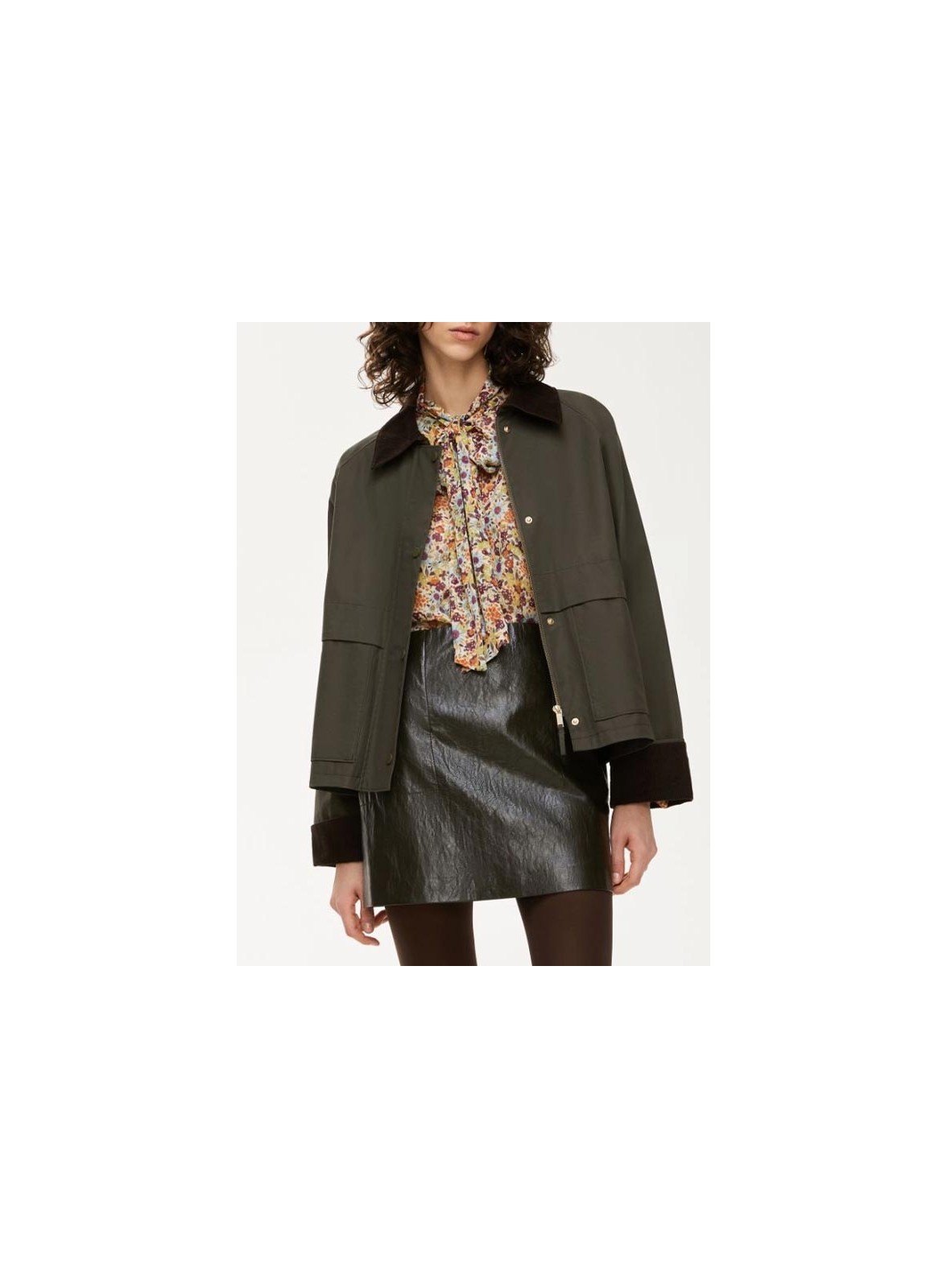 Giacca firmata IBLUES, dallo stile versatile e contemporaneo, ideale per completare look casual e raffinati. Il modello presenta collo cerato e maniche raglan lunghe, con chiusura a zip nascosta e bottoni a pressione. Le tasche, inserite nei fianchi e applicate, aggiungono praticità, mentre il colletto e il risvolto dei polsi in velluto a costine conferiscono un tocco elegante. Il capo ha contropiega centrale con cinturino e bottone, fit regolare e fodera interna.