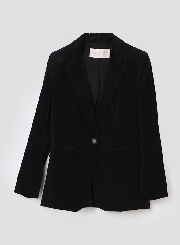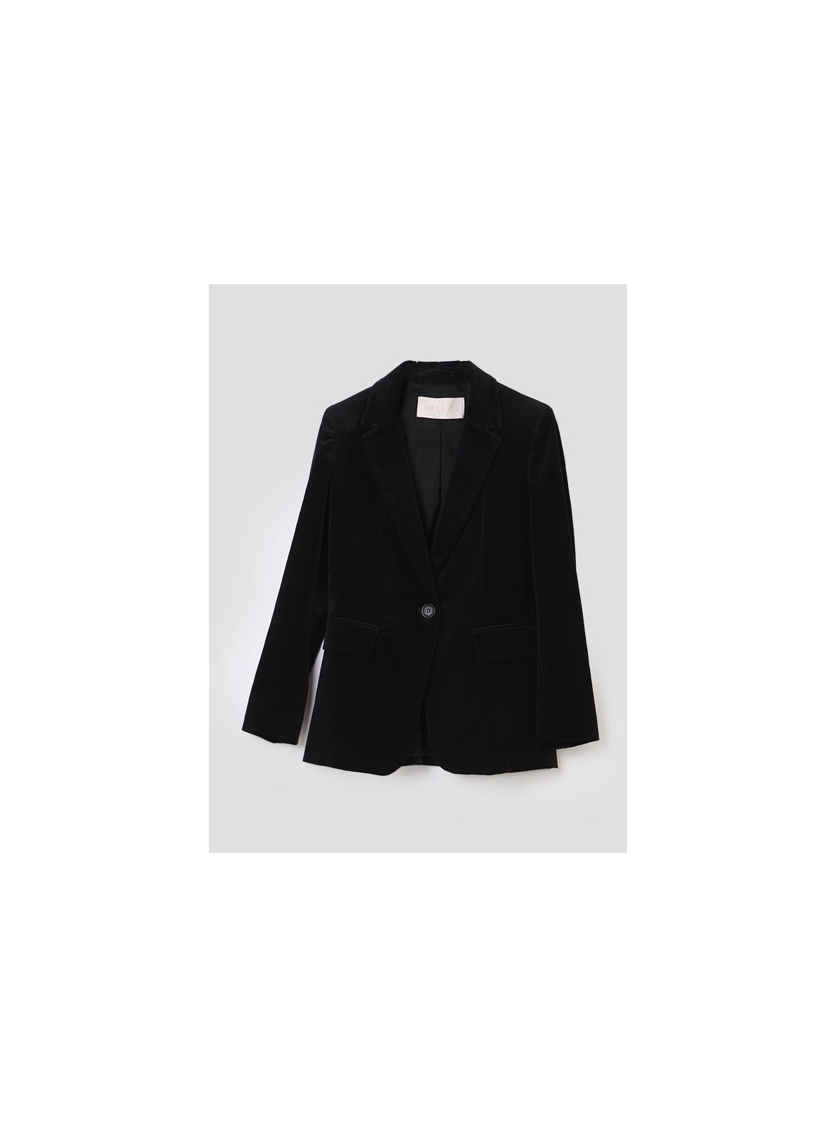 Blazer aderente in velluto misto cotone, firmata IBLUES, con collo a rever e tasche a patta, perfetta per ogni occasione.