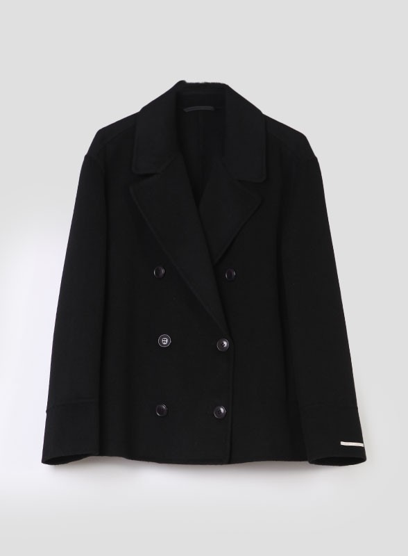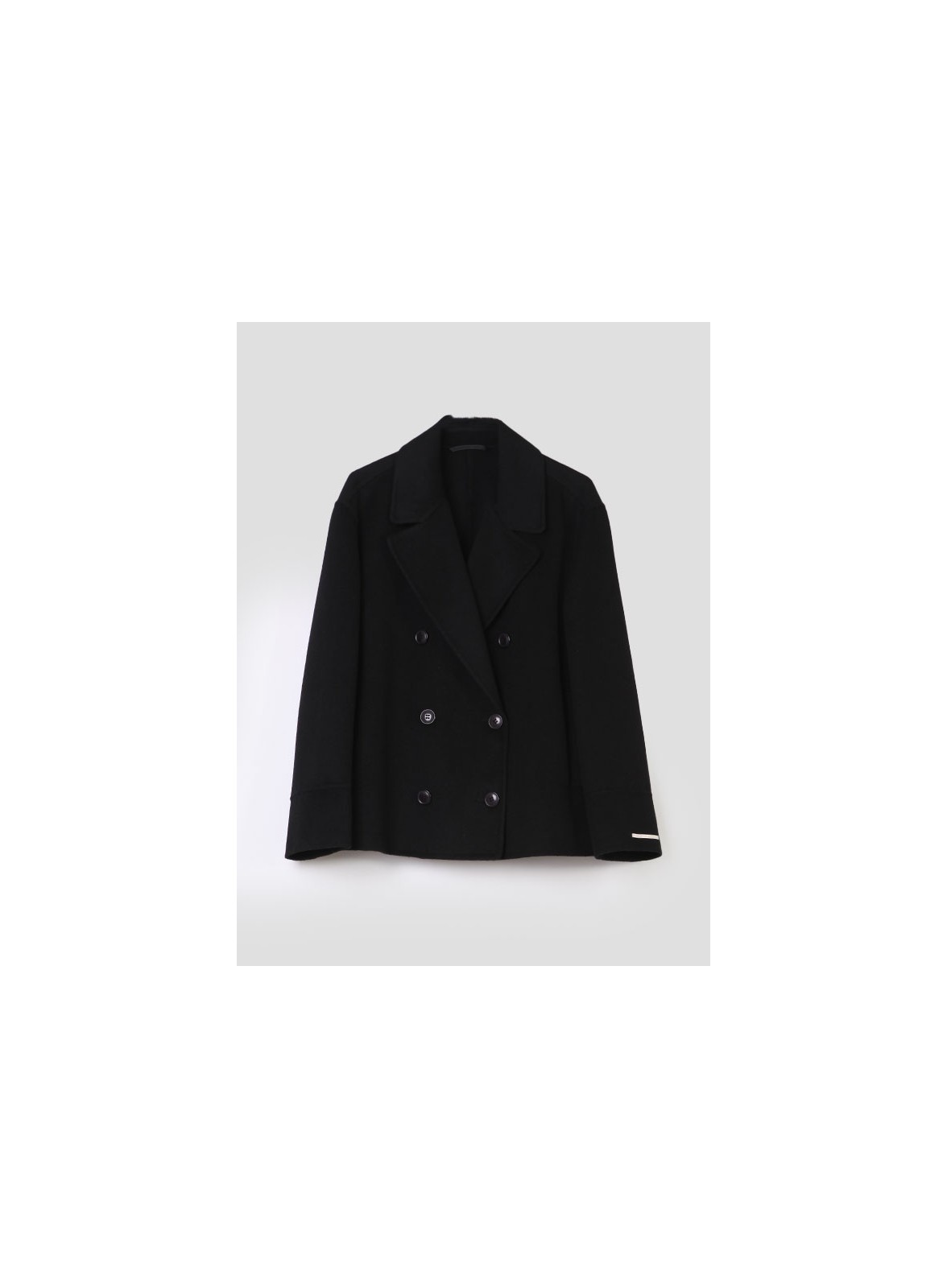 Giacca firmata IBLUES in doppio tessuto misto lana, cucita a mano. Linea morbida e fit ampio, perfetta per uno stile elegante e raffinato.