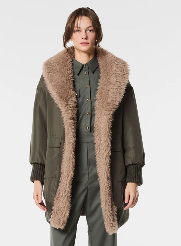 Cappotto firmato NENETTE, giaccone reversibile in nylon ed ecopelliccia, dallo stile elegante e contemporaneo, perfetto per ogni occasione.