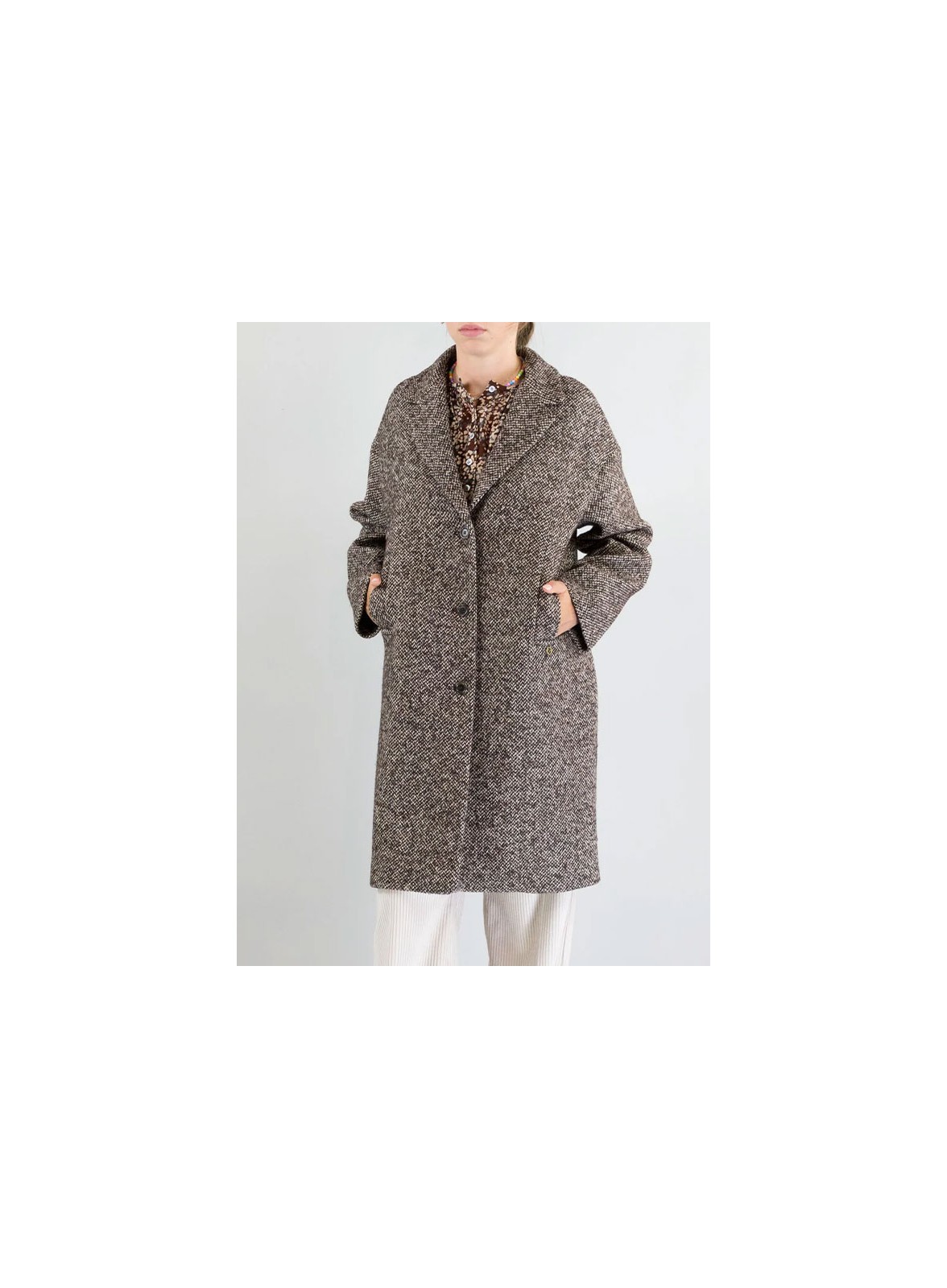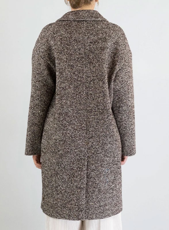 Cappotto in misto lana firmato OTTOD'AME, collo a rever, manica lunga, tasche con patta, chiusura con bottone a pressione nascosto. Scopri la nuova collezione.