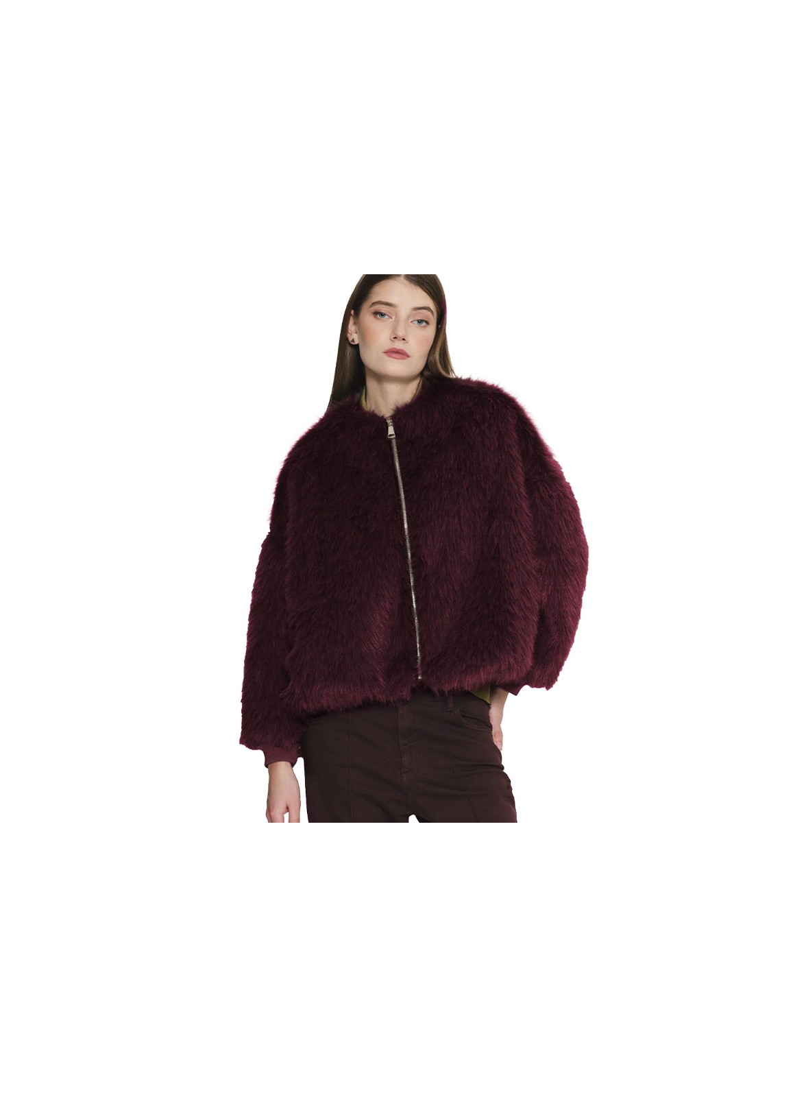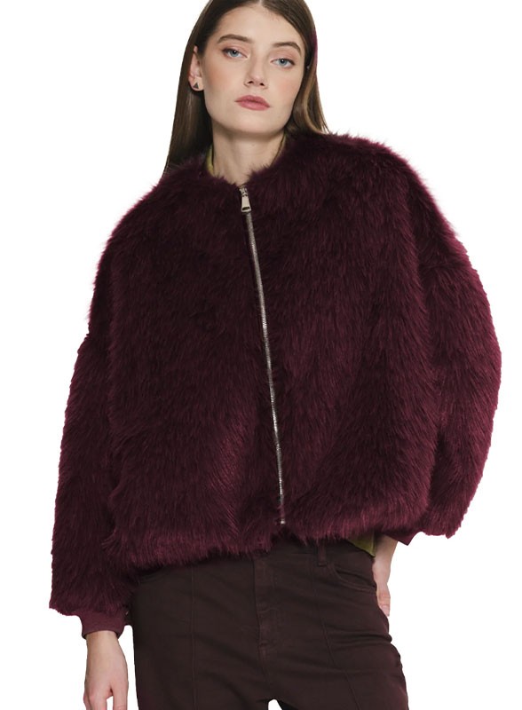 Bomber firmato KAOS, in morbida pelliccia sintetica. Stile alla moda e comfort made in Italy, perfetto per un look contemporaneo.