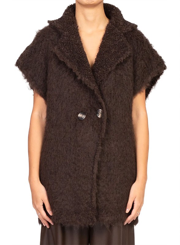 Giacca lunga doppiopetto firmata KONTATTO in bouclé di lana e mohair. Elegante e versatile, un must-have che unisce comfort e stile.