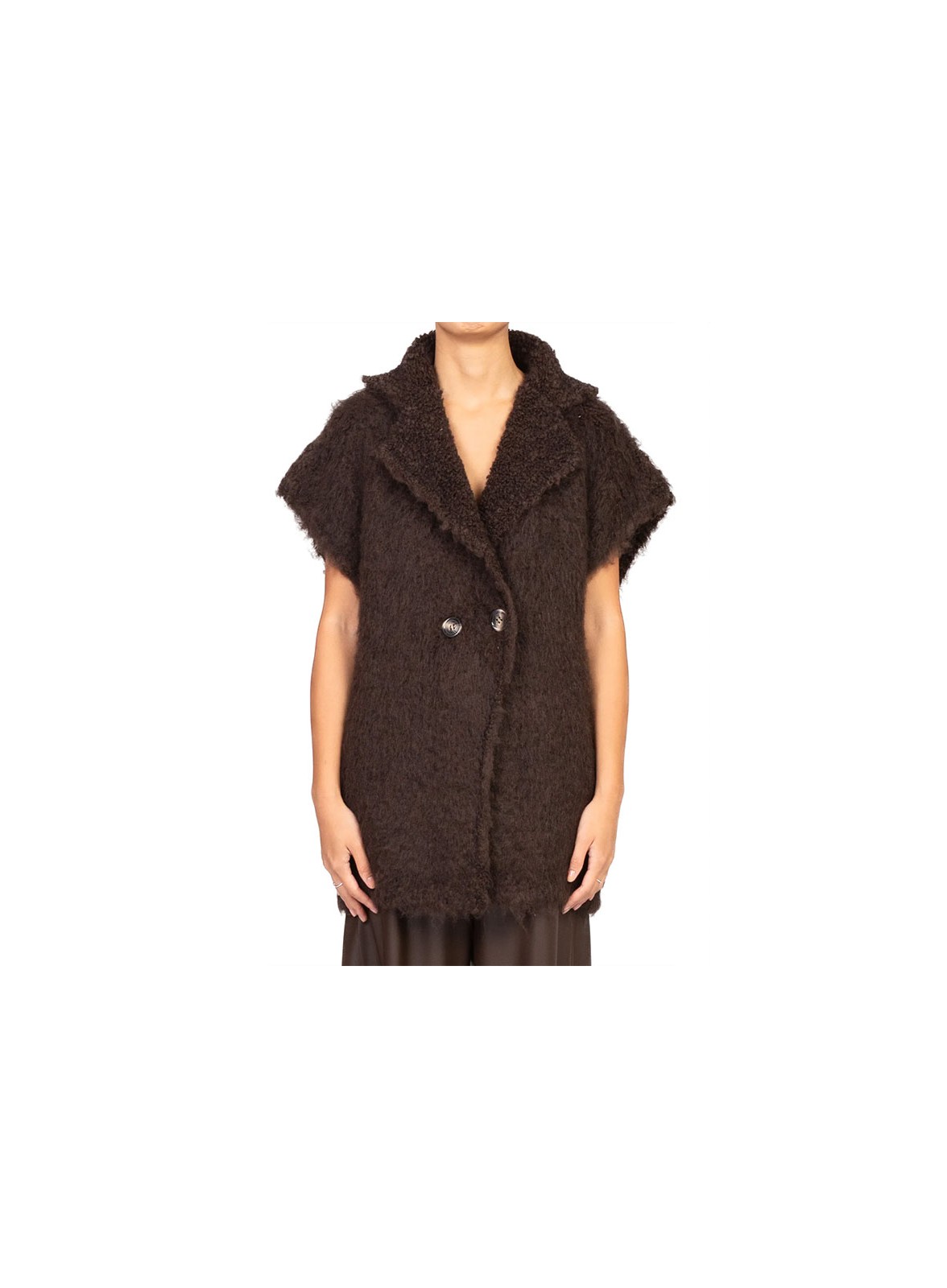Giacca lunga doppiopetto firmata KONTATTO, un capo raffinato che unisce eleganza e comfort senza rinunciare alla praticità. Realizzata in pregiato bouclé, un mix di lana e mohair, questa giacca si distingue per la sua texture morbida e avvolgente, capace di garantire calore e leggerezza allo stesso tempo. La silhouette smanicata dona un tocco moderno e versatile, rendendola perfetta da indossare sopra camicie, bluse o maglie a manica lunga. Ideale per look ricercati sia da giorno che da sera, è un must-have per chi ama l’originalità nei dettagli.