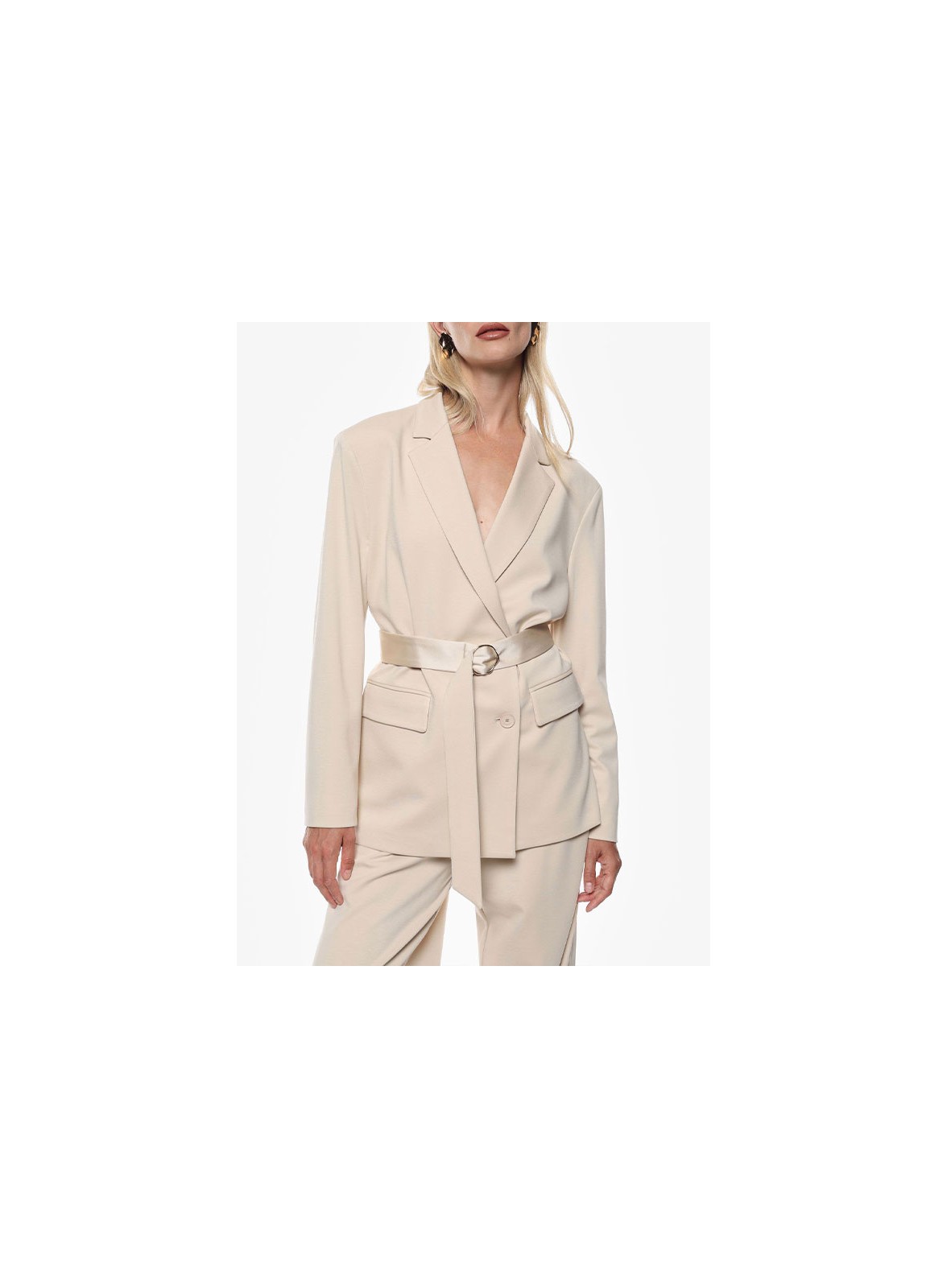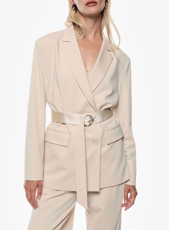 Blazer IMPERIAL firmato, doppio petto con cintura, stile raffinato e versatile. Eleganza quotidiana con un tocco distintivo.