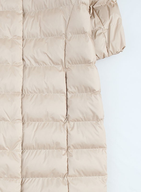 Piumino firmato MM MAXMARA dal taglio dritto, pensato per offrire comfort e libertà di movimento in ogni occasione. Il design essenziale ma raffinato è completato da un colletto alto e da un cappuccio staccabile che garantiscono una protezione ottimale contro freddo, vento e pioggia. La chiusura con zip lunga è arricchita da una patta interna antivento, mentre le tasche laterali con chiusura offrono praticità e stile. Lo spacco posteriore aggiunge dinamicità alla linea e favorisce una migliore vestibilità anche sopra altri capi.