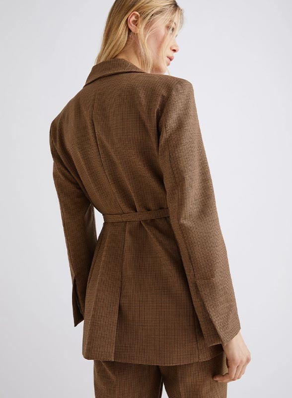 Blazer firmato MARELLA in tessuto diagonale di misto lana stretch, un capo essenziale e sofisticato che unisce comfort e stile. Il suo taglio regolare e la fodera interna garantiscono una vestibilità impeccabile e un'eleganza senza tempo. Il design è caratterizzato da un raffinato scollo con rever e da una chiusura monopetto con bottone e cintura, che sottolinea delicatamente il punto vita, esaltando la silhouette femminile. Le tasche laterali con patta aggiungono un tocco funzionale e curato, mentre lo spacco centrale sul retro assicura libertà di movimento. Perfetta per completare look formali o per aggiungere un tocco elegante a un outfit casual, questa giacca si distingue per le sue linee decise sulle spalle e la modernità del taglio sartoriale.