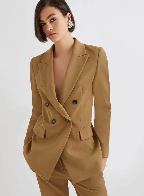 Blazer firmato MARELLA in misto viscosa stretch, doppiopetto e taglio maschile per un’eleganza moderna e raffinata.