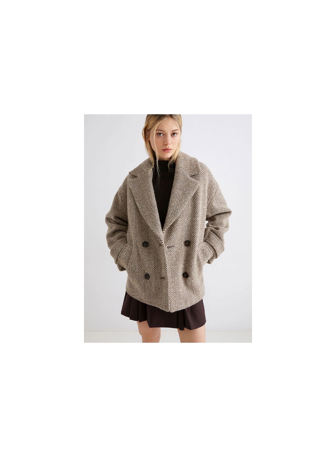 Giaccone firmato MARELLA in resca bouclé di misto lana, doppiopetto elegante e fit dritto, per uno stile raffinato e contemporaneo.