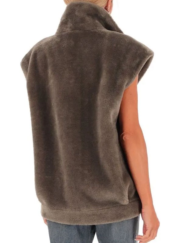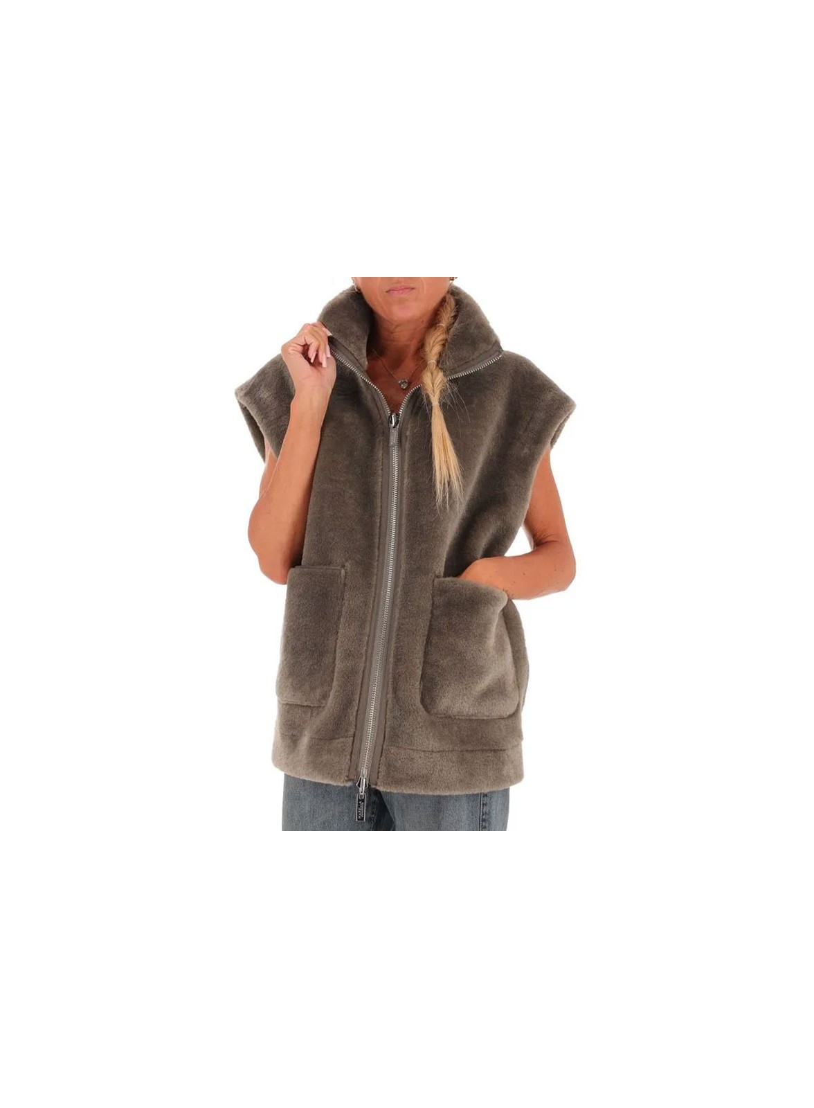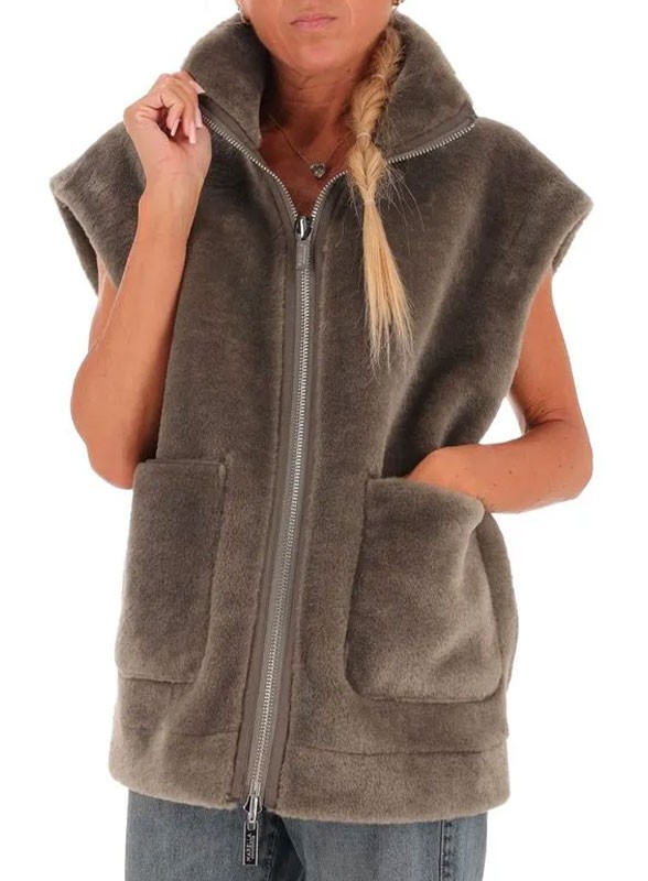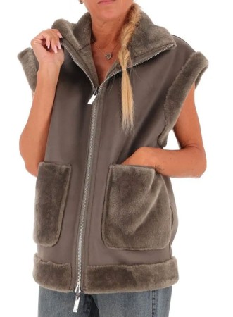 Gilet reversibile firmato MARELLA, in jersey vellutato e effetto furry, dallo stile cocoon con zip in metallo e tasche applicate