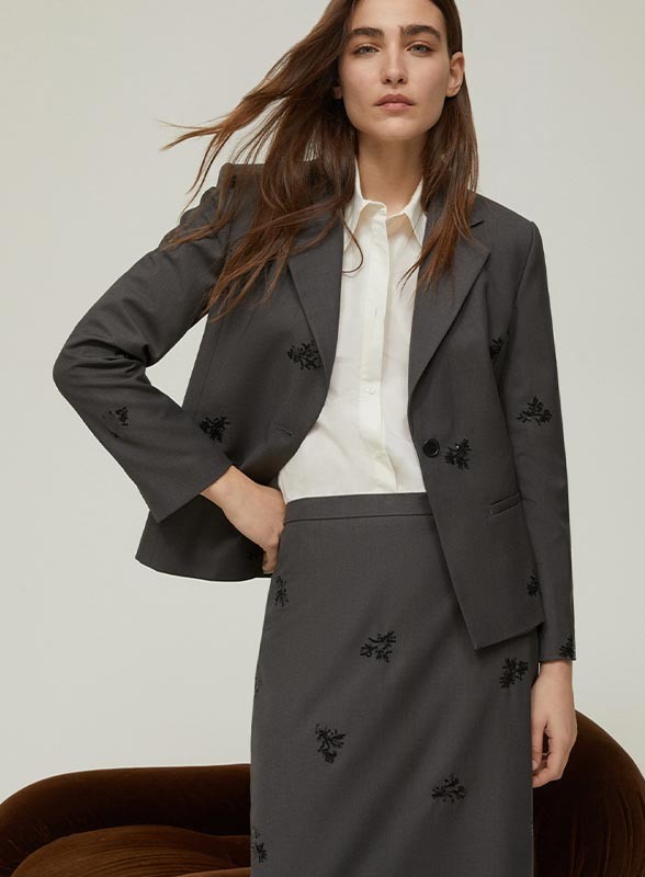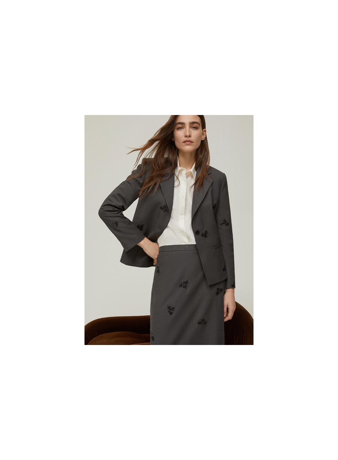Blazer slim con ricami di paillettes ton-sur-ton, firmato PENNYBLACK. Eleganza raffinata e moderna per look da sera o da cerimonia.