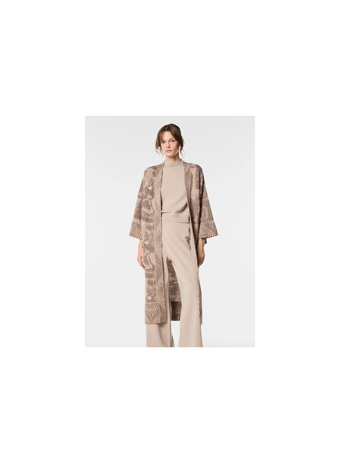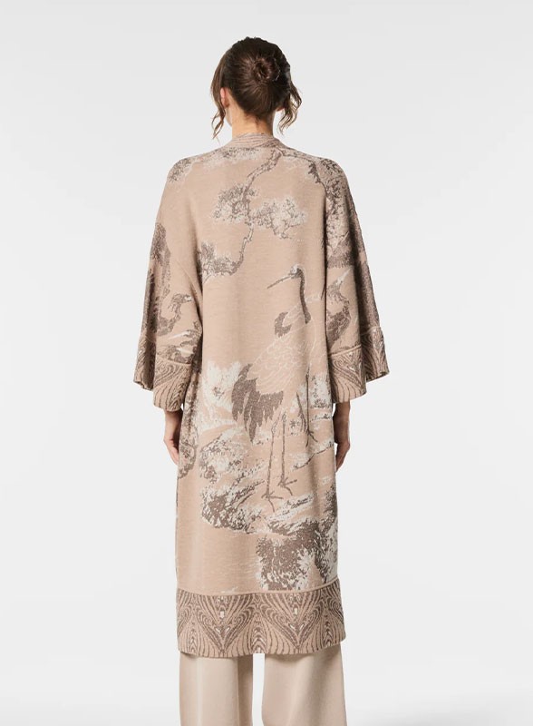 Cardigan kimono jacquard firmato NENETTE, elegante e ricercato, perfetto per aggiungere un tocco esotico e sofisticato al tuo look.