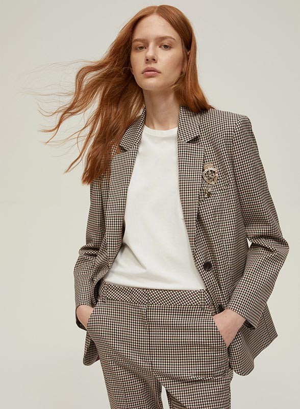 La giacca firmata PENNYBLACK è un capo dal fascino contemporaneo che coniuga eleganza e comfort. Realizzata in un pregiato blend di viscosa stretch tinto in filo a quadretti, presenta un taglio monopetto a due bottoni e linee diritte che valorizzano la silhouette con sobria raffinatezza. Il collo a rever sottolinea lo stile classico del blazer, mentre il taschino a filo e le tasche a pattina sul davanti aggiungono un tocco sartoriale. Sul retro è presente uno spacco che garantisce maggiore libertà di movimento, completato da spacchetti con bottoni ai polsi che donano un dettaglio ricercato. Il capo è interamente foderato per un comfort impeccabile e arricchito da spille staccabili, perfette per personalizzare il look in base all’occasione.