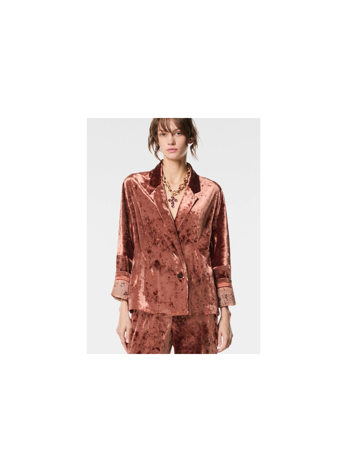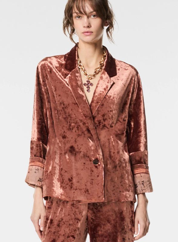 Giacca kimono corta in velluto firmata NENETTE, dal fascino luminoso ed elegante, ideale per look formali o casual-chic dal gusto contemporaneo.