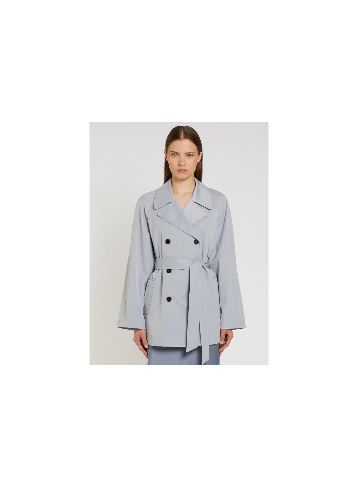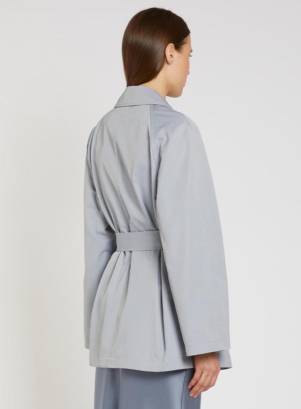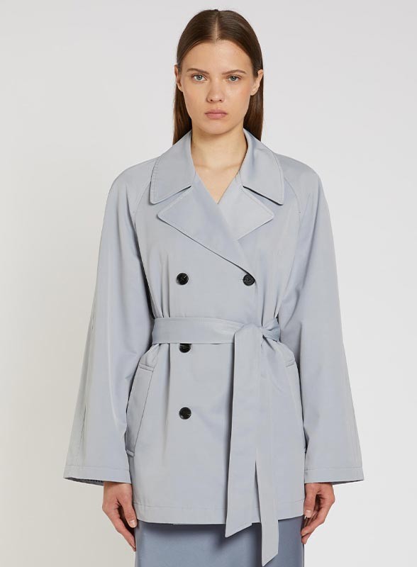 Impermeabile firmato MARELLA, trench corto in cotone tecnico con cintura in vita e doppiopetto. Eleganza moderna e fit regolare.