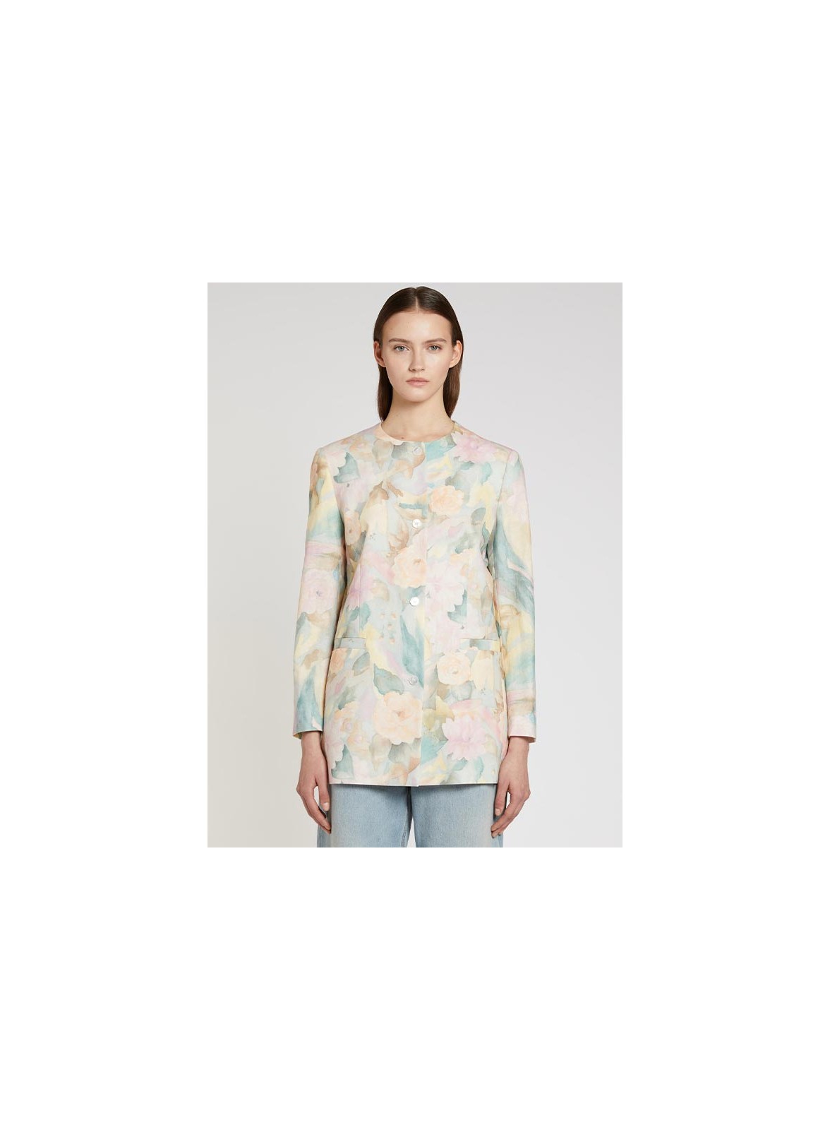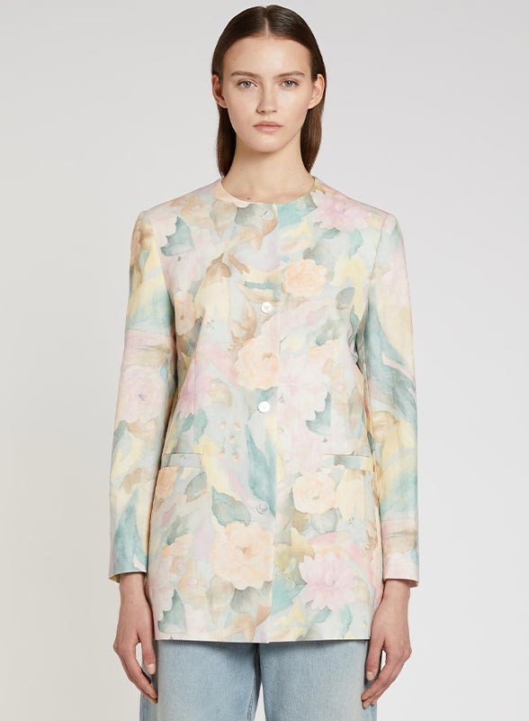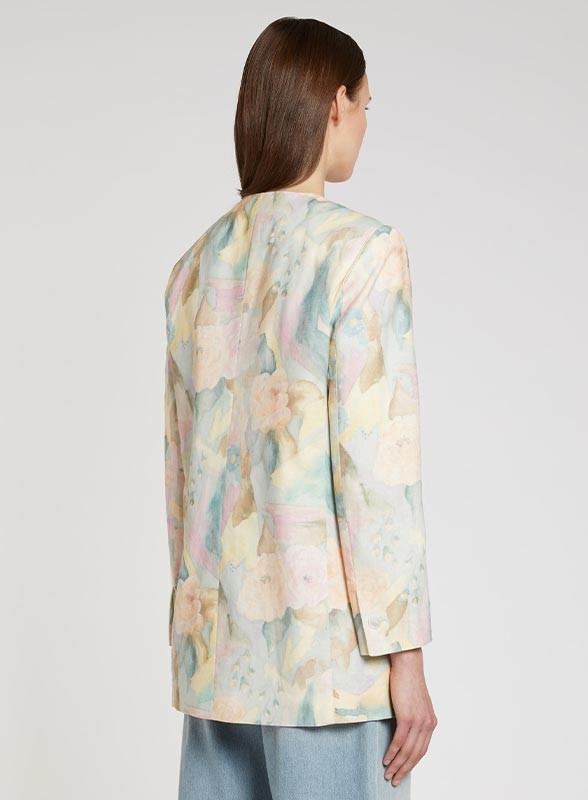 Giacca in stuoia lino e cotone stretch, fit regolare con scollo stondato, firmata MARELLA, stampa floreale elegante.