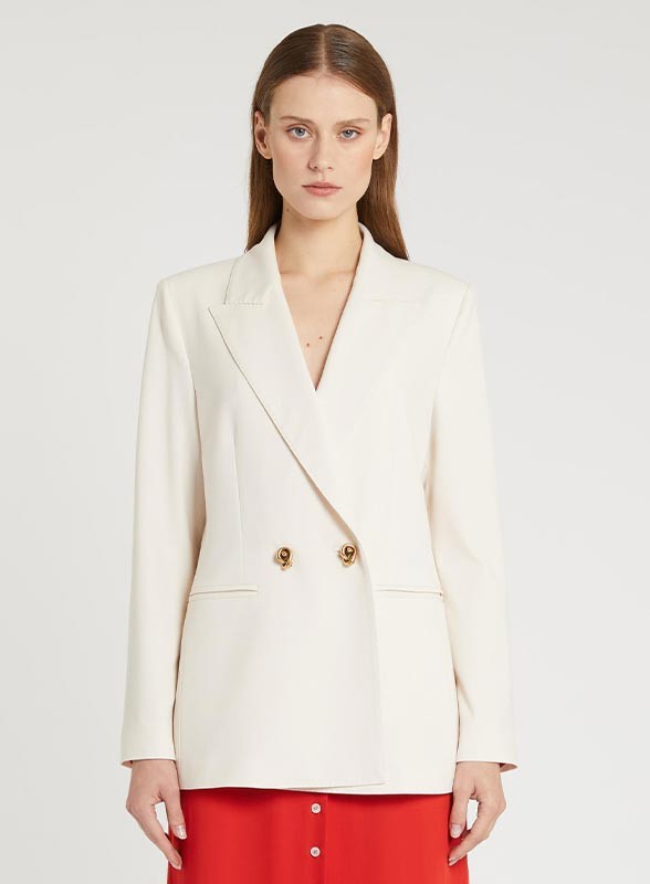 Giacca blazer doppiopetto in tela bistretch dal taglio sartoriale, linee maschili e fit regolare firmata MARELLA.