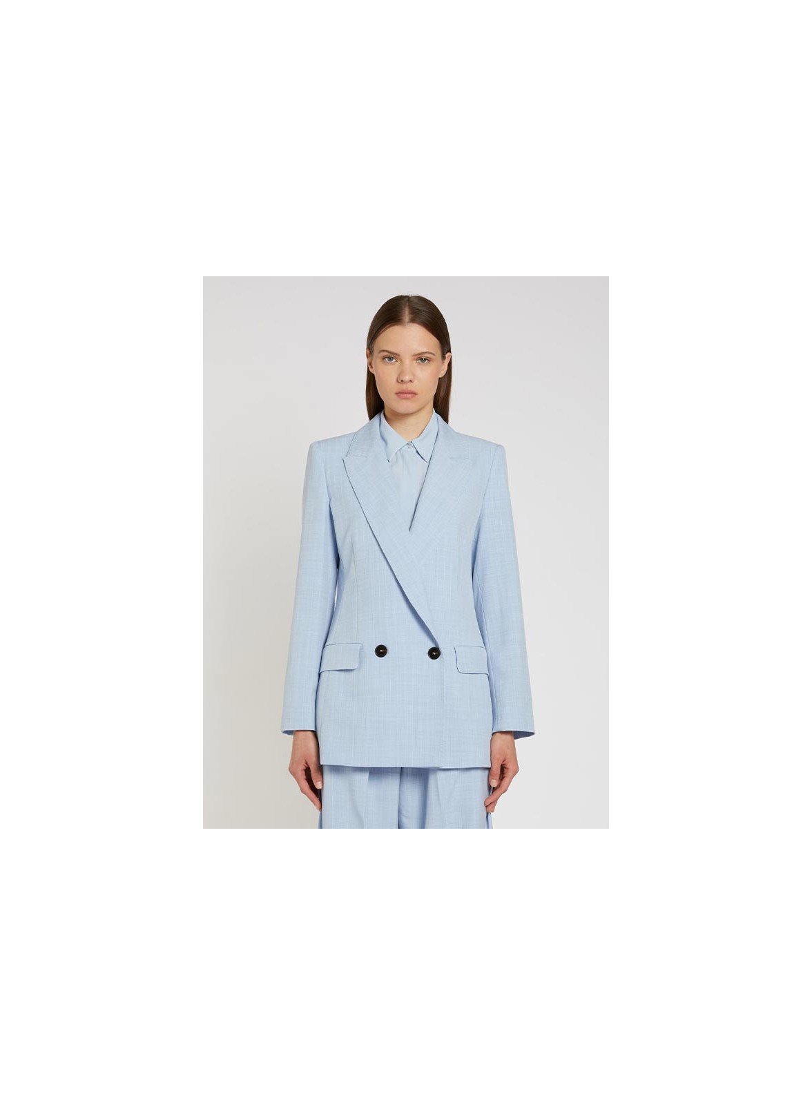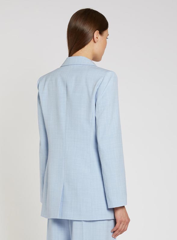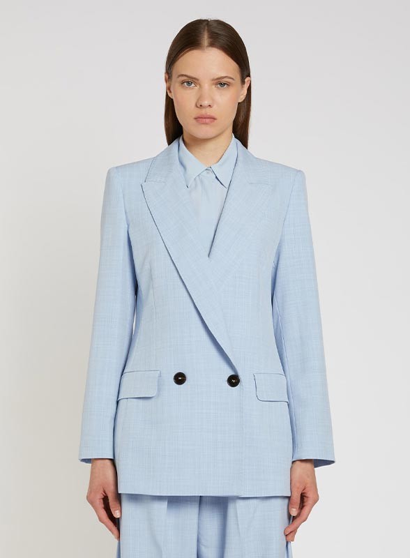 Giacca blazer in tela tecnica stretch effetto malfilè, doppiopetto con rever a lancia, firmata MARELLA. Eleganza contemporanea.