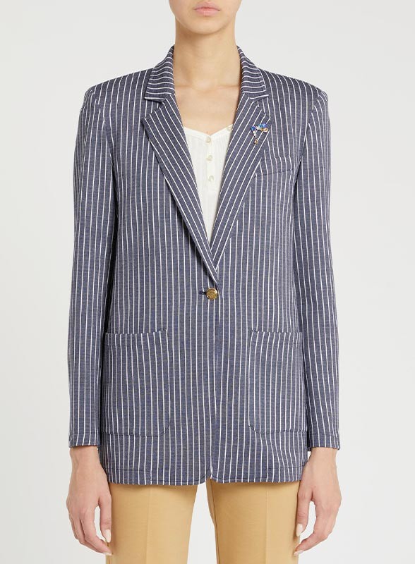 Giacca firmata PENNYBLACK in jersey gessato: comfort e stile contemporaneo con taglio diritto e fit regolare.