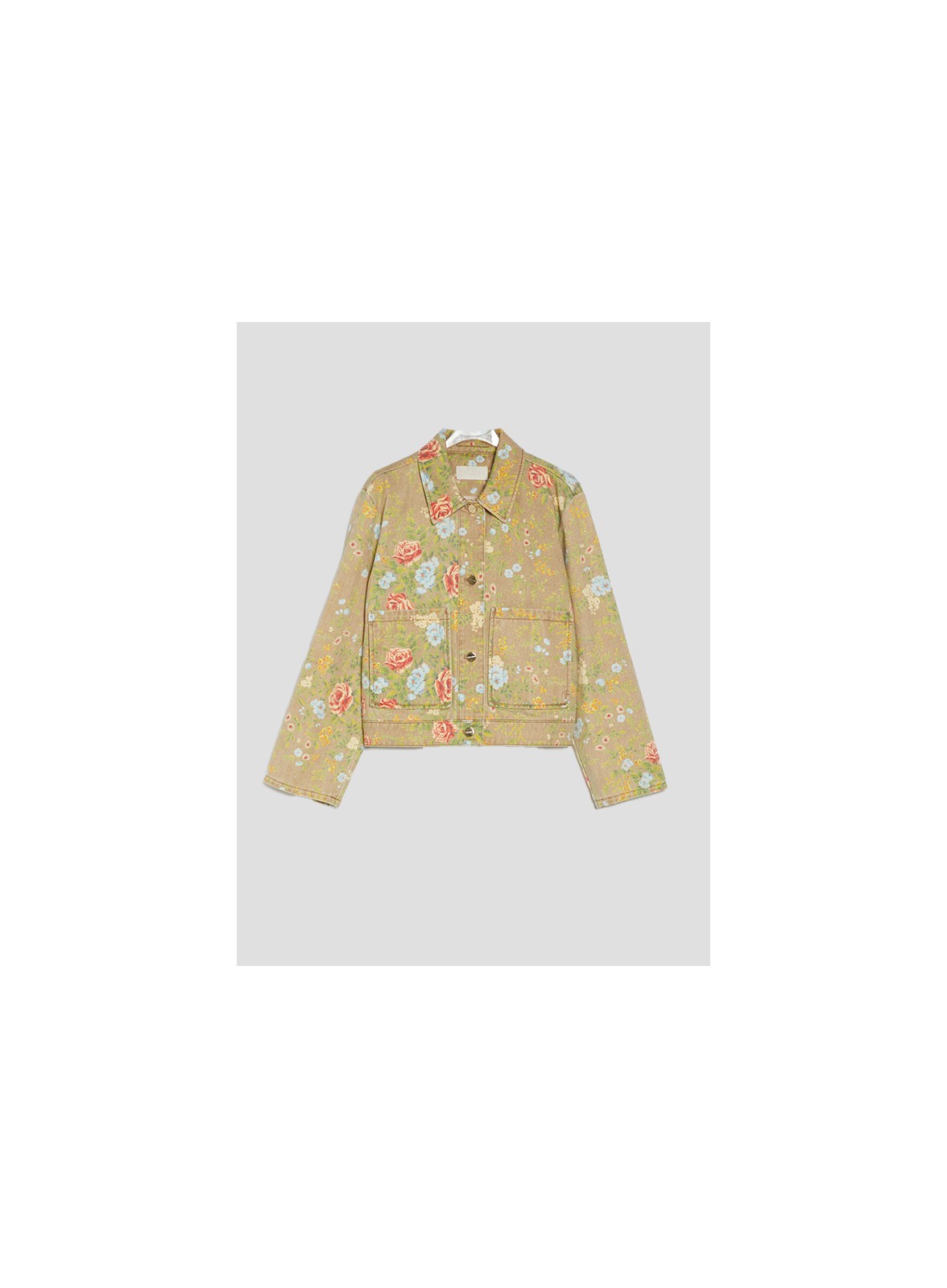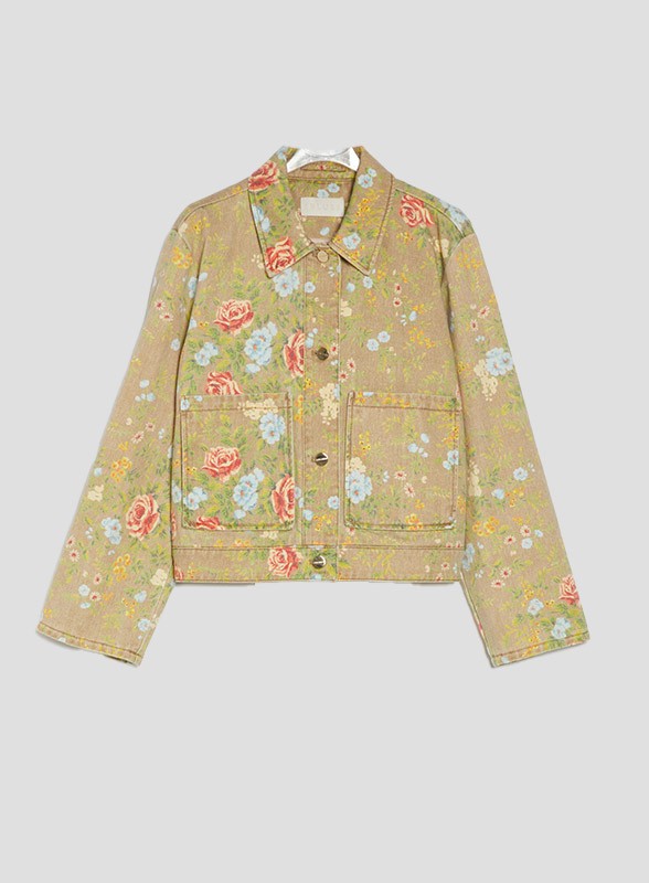 Giacca firmata IBLUES in cotone stampato, linea dritta e fit regolare, con tasche applicate e chiusura a bottoni.