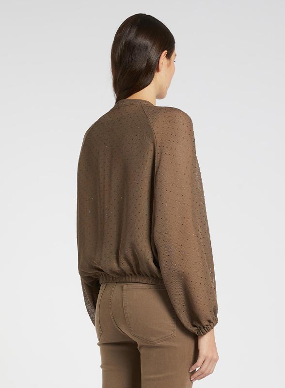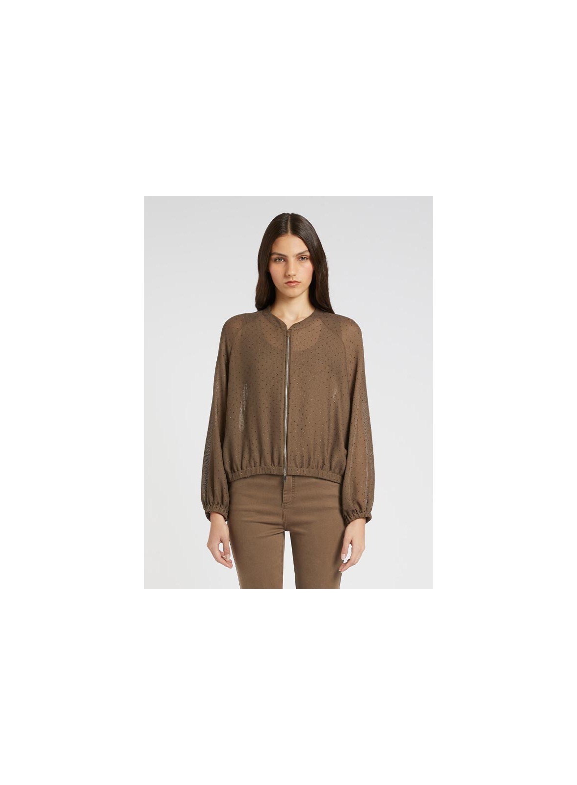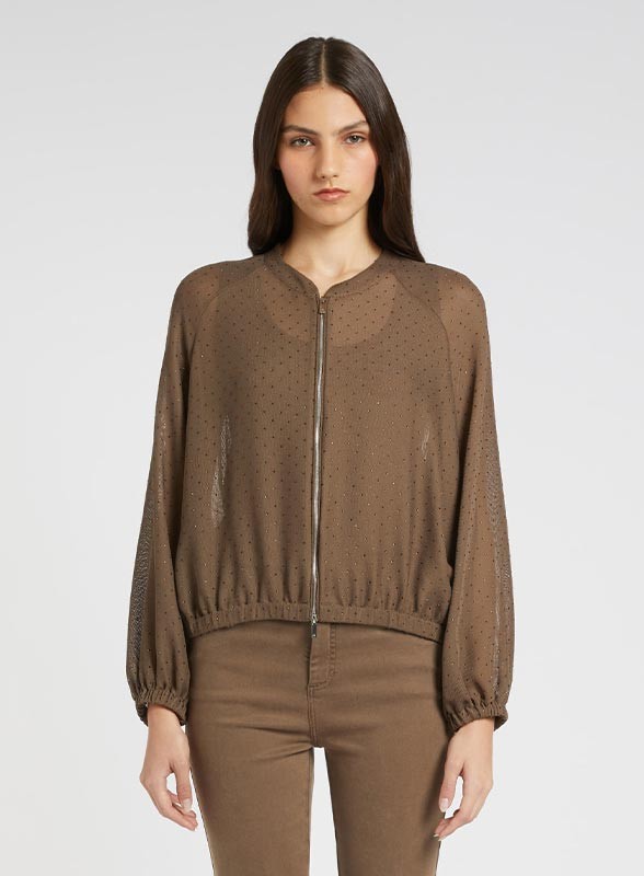 Giacca firmata MARELLA in rete tecnica con micro strass, dal fit ampio e design bomber: leggera, glamour e perfetta per la stagione calda.