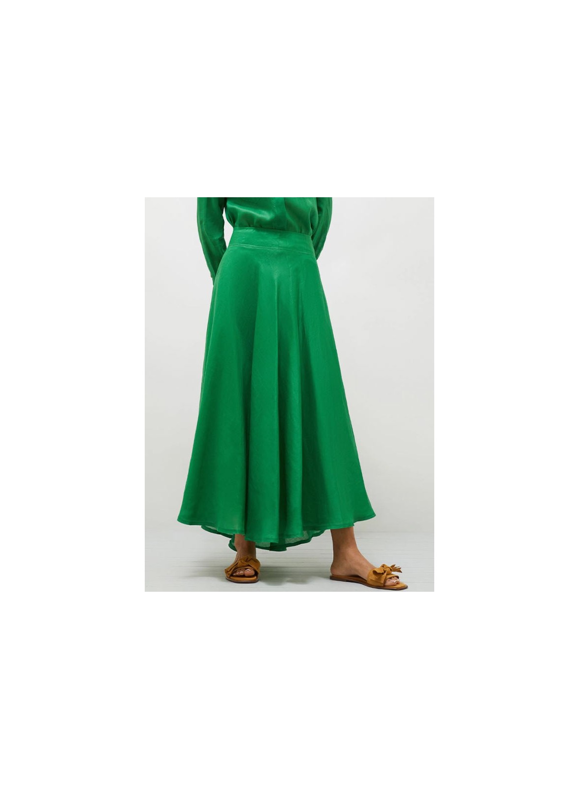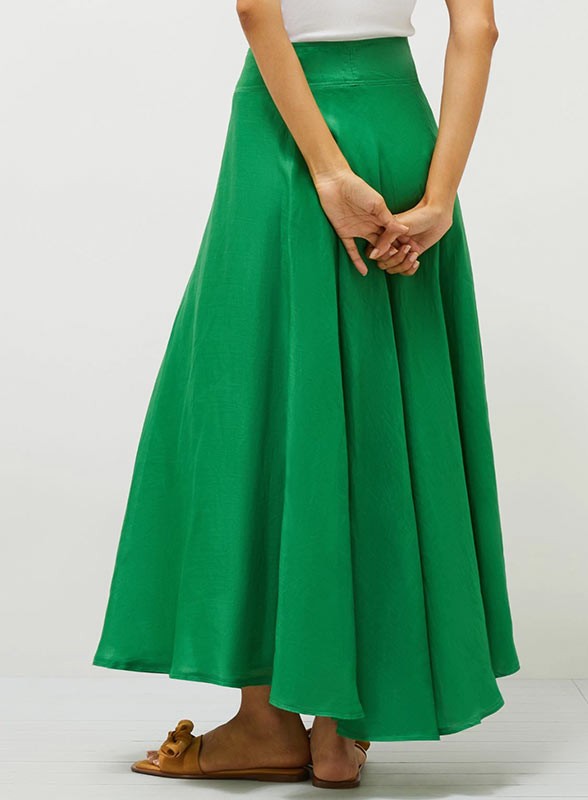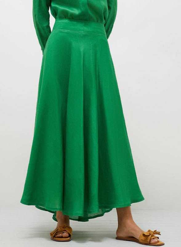 Gonna firmata MARELLA in puro ramiè, dalla linea svasata e fluida. Eleganza senza tempo per una silhouette slanciata.