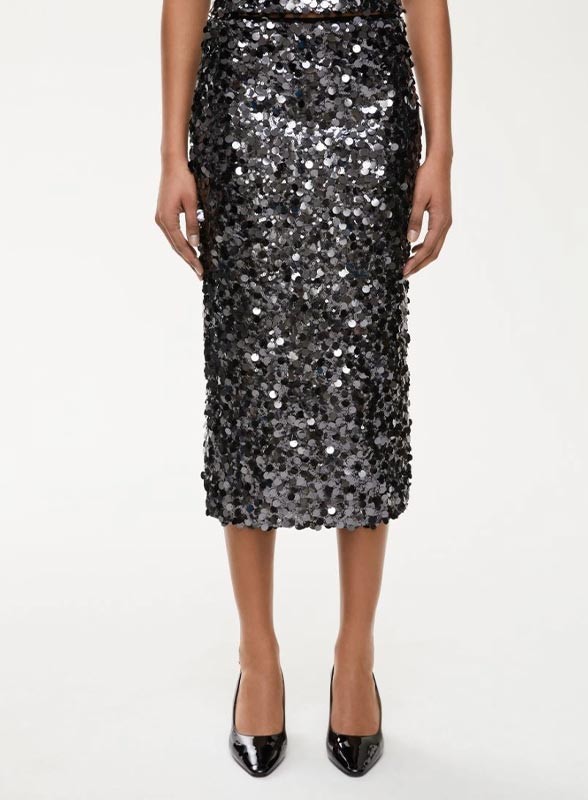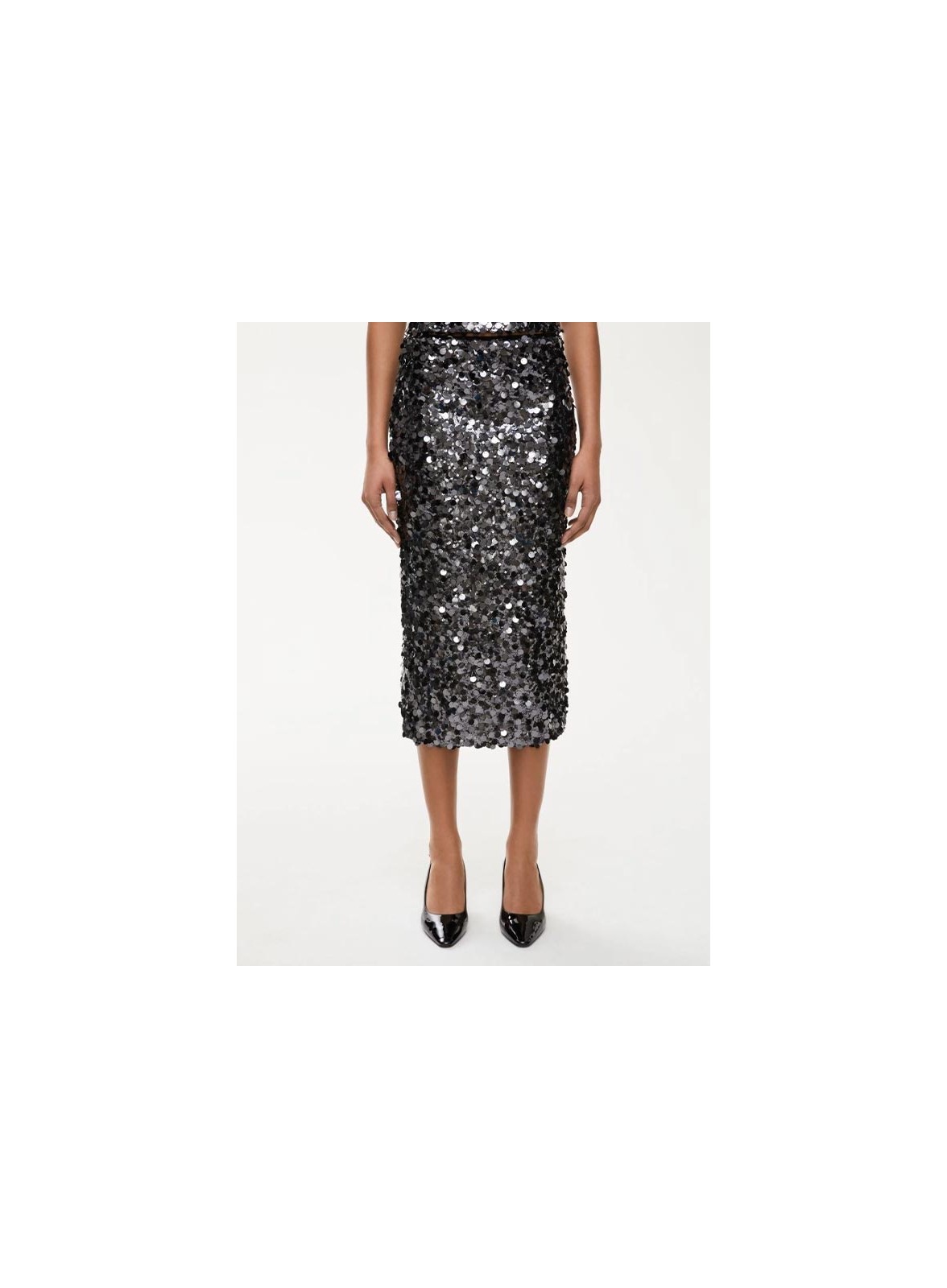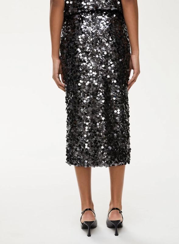 Gonna pencil firmata IBLUES in jersey di tulle con paillettes, elastico in vita e fit aderente, perfetta per un look elegante e confortevole.