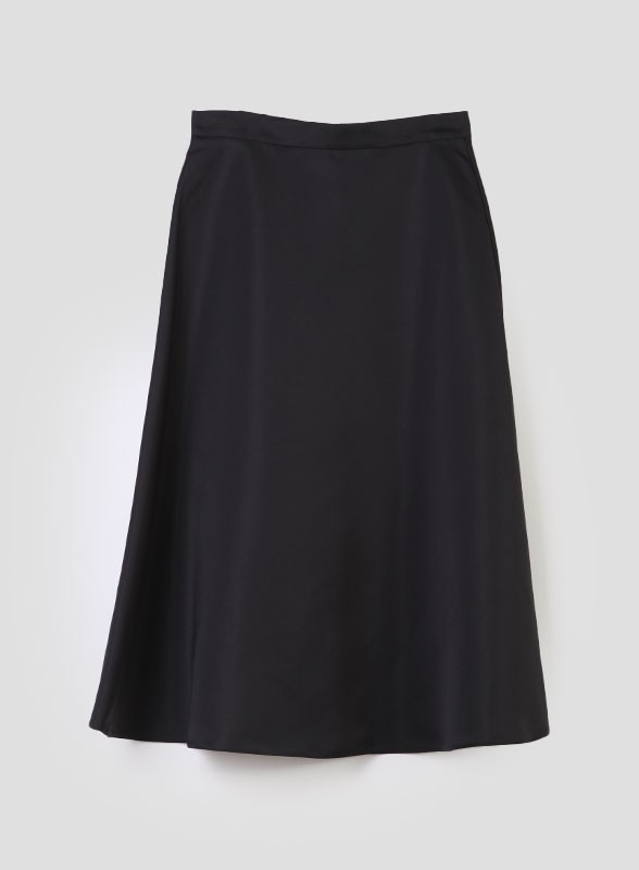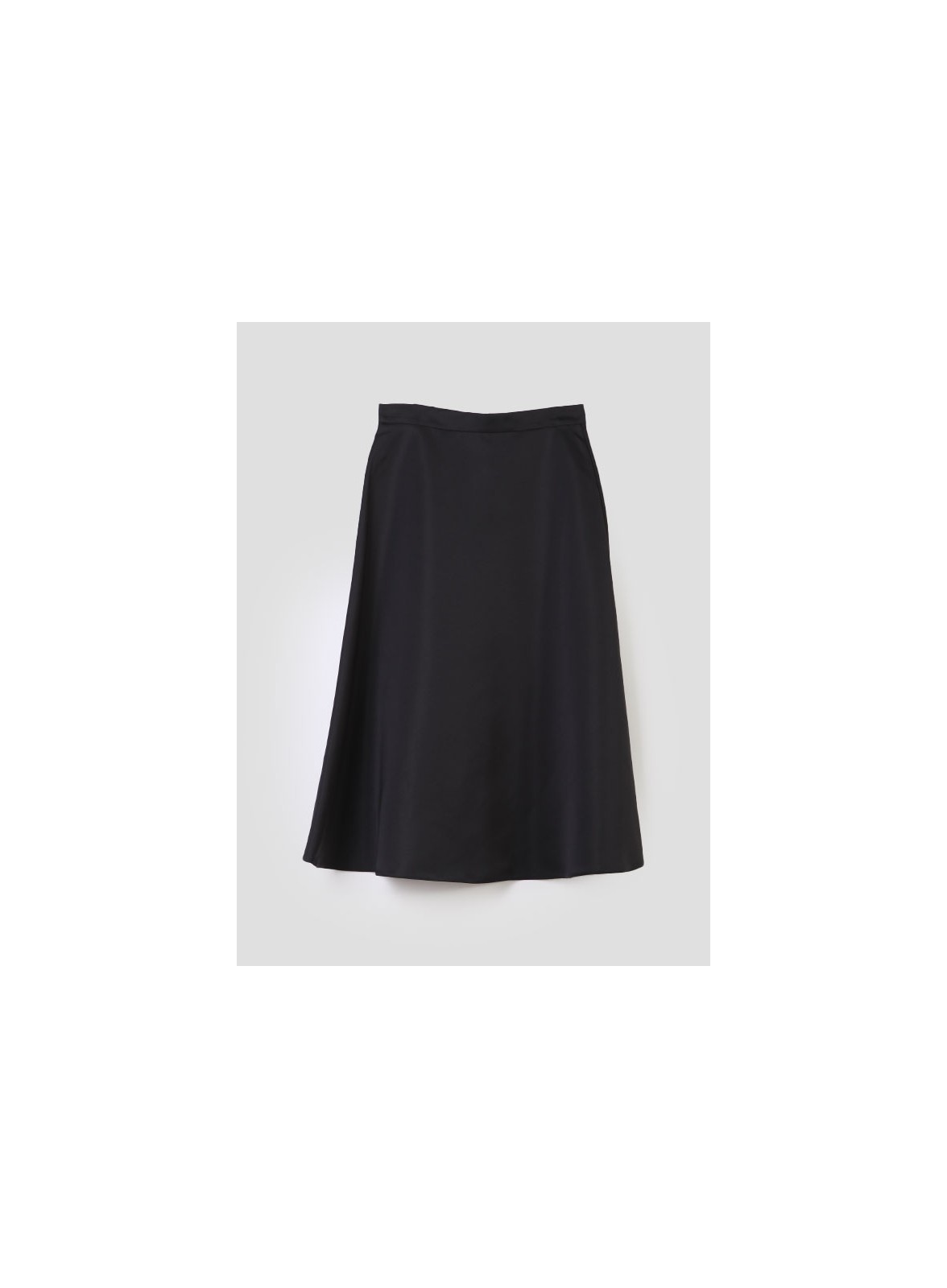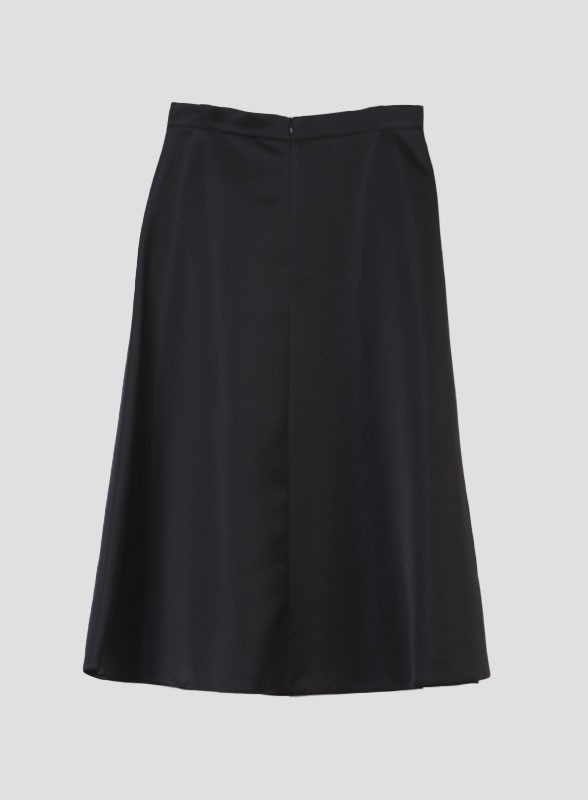 Gonna midi firmata IBLUES in duchesse, linea svasata e fit ampio, chiusura zip invisibile sul retro, elegante e versatile.