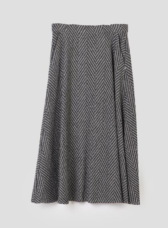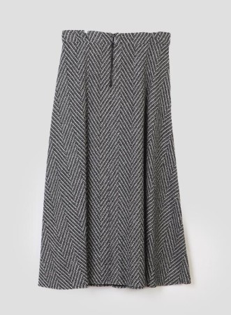 Gonna firmata PENNYBLACK, linea svasata in tessuto stuoia, zip invisibile, tasche sui fianchi, fit regolare, sfoderata.